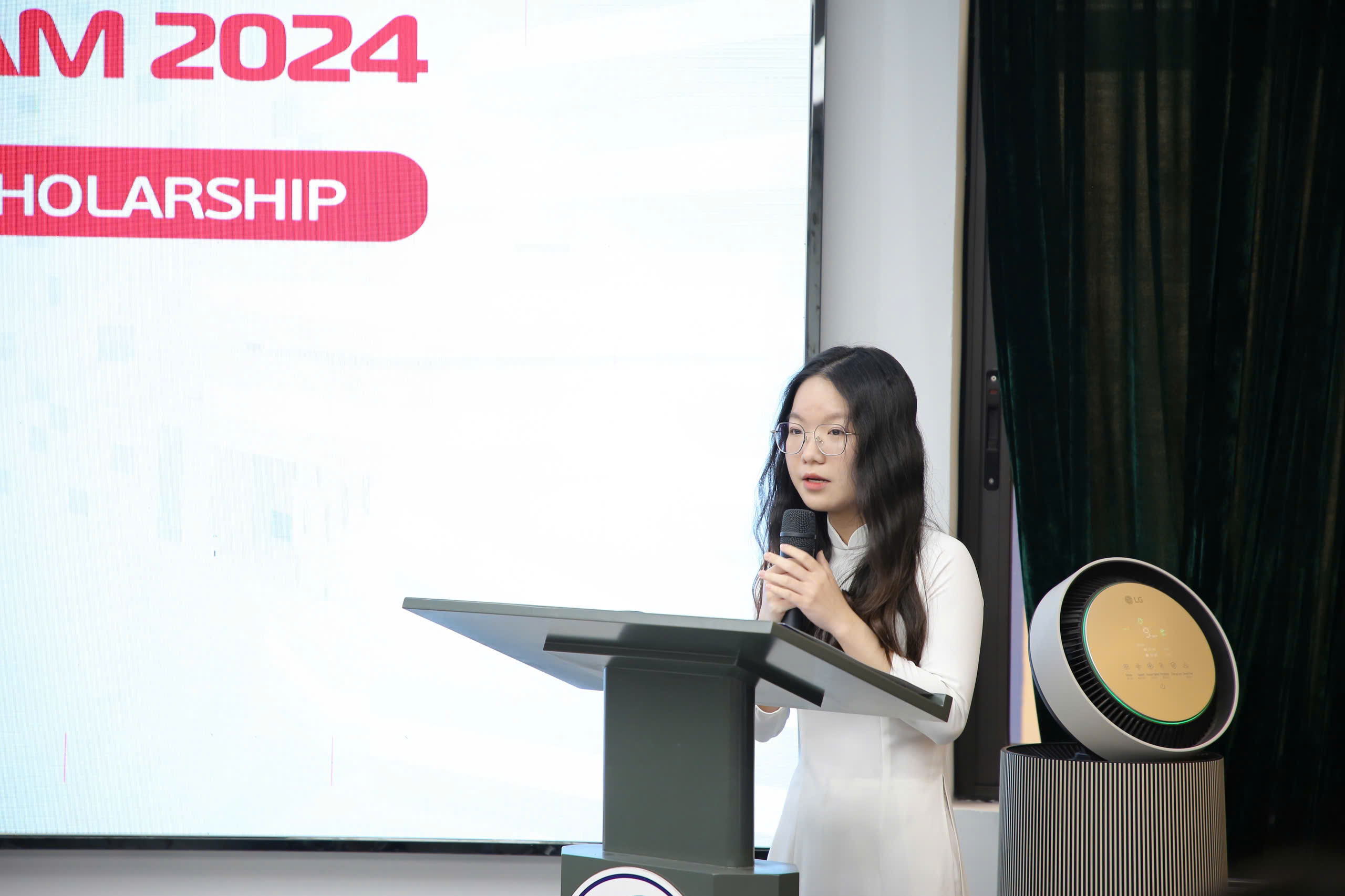 Đại diện cho các học viên, học viên Trần Ngọc Trúc Linh (Kỹ thuật phần mềm) đã gửi lời cảm ơn đến Viettel, các thầy cô Trường ĐH Công nghệ đã tạo điều kiện giúp các học viên có cơ hội nhận học bổng ý nghĩa này. Trúc Linh nhấn mạnh, học bổng không chỉ là sự hỗ trợ tài chính giúp chúng em chi trả kinh phí học tập, nghiên cứu, mà còn là nguồn động lực to lớn để chúng em tiếp tục theo đuổi đam mê, phấn đấu đạt được mục tiêu của bản thân. Bên cạnh niềm vinh dự khi nhận học bổng, Trúc Linh còn ý thức được trách nhiệm lớn lao phải cố gắng nhiều hơn nữa trong việc học tập và nghiên cứu. Trúc Linh nói riêng cũng như các học viên khác sẽ sử dụng nguồn tài trợ này một cách hiệu quả nhất, tập trung vào các dự án nghiên cứu có ý nghĩa khoa học và thực tiễn cao, đồng thời không ngừng hoàn thiện bản thân và có thể ứng dụng công nghệ tham gia giải quyết các vấn đề thực tiễn cho xã hội.