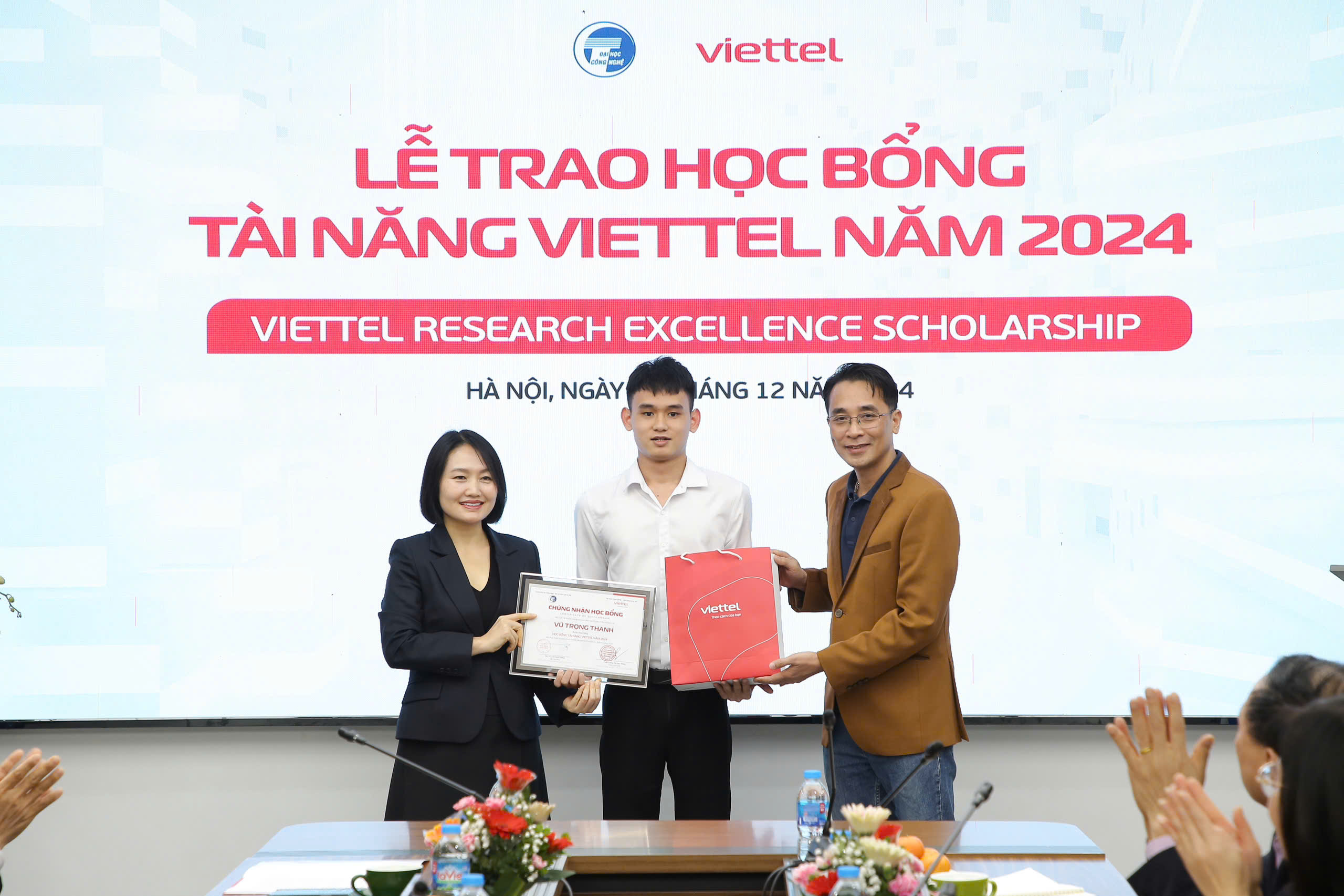 Ngày 21/12/2024, 05 học viên Thạc sĩ của Trường Đại học Công nghệ – Đại học Quốc gia Hà Nội (VNU-UET) được Tập đoàn Công nghiệp – Viễn thông quân đội (Viettel) trao học bổng thuộc chương trình Viettel Research Excellence Scholarship (VRES) năm 2024, trị giá 250 triệu đồng. Học bổng nhằm thúc đẩy phát triển nguồn nhân lực chất lượng cao cho đất nước, đặc biệt là nhân sự lĩnh vực công nghệ số.