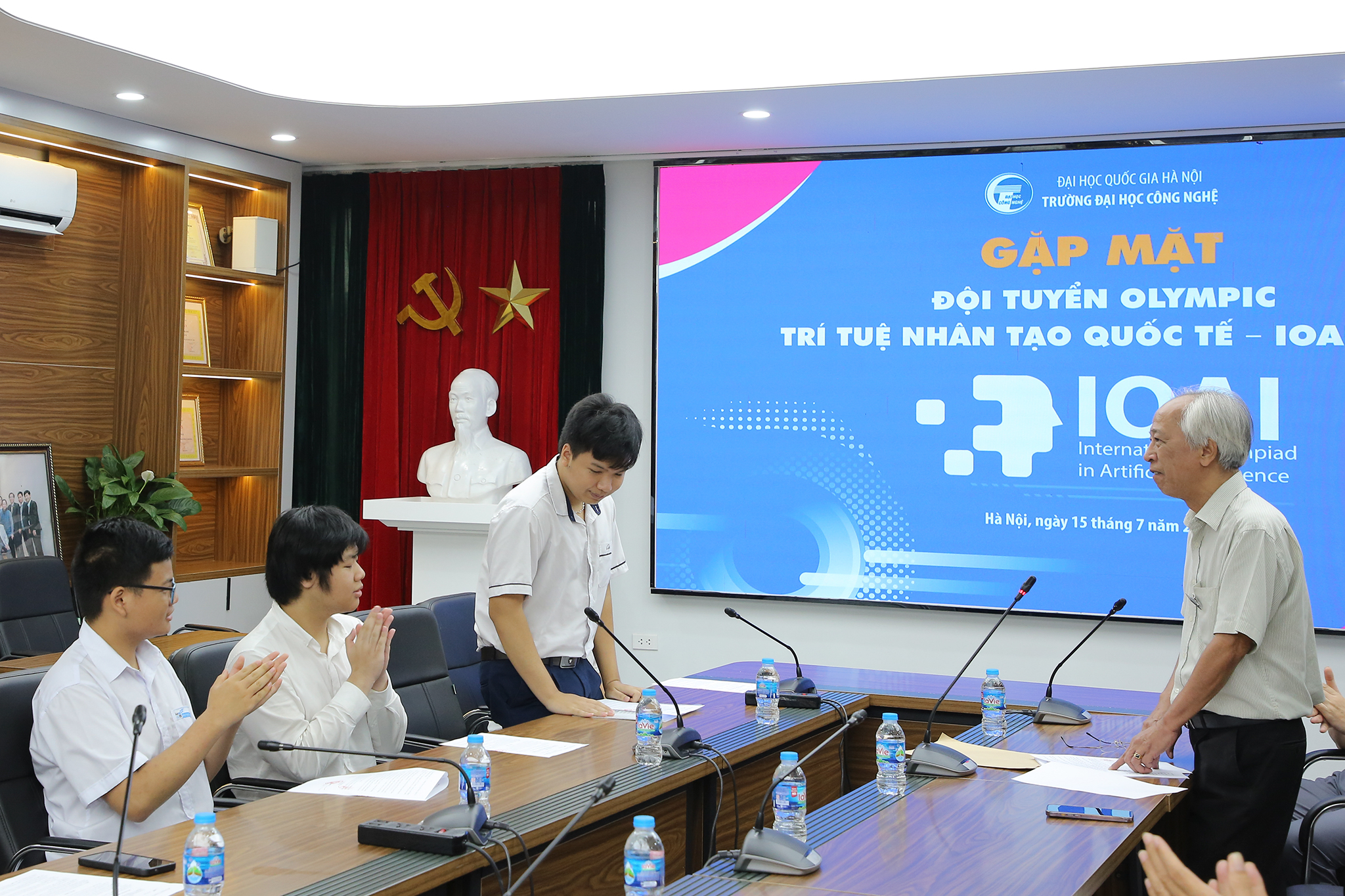 Tại buổi gặp mặt, TS. Nguyễn Long – Tổng Thư ký Hội Tin học Việt Nam cho biết, đội tuyển quốc gia năm nay là kết quả của quá trình tuyển chọn gắt gao từ kỳ thi Olympic Trí tuệ nhân tạo Việt Nam (VOAI 2025), được tổ chức vào tháng 6/2025 bởi Viện Nghiên cứu Đổi mới Sáng tạo và Kiểm định Chất lượng (RIVA), Hội Tin học Việt Nam phối hợp với Trường Đại học Công nghệ. VOAI 2025 là kỳ thi quốc gia đầu tiên về trí tuệ nhân tạo dành cho học sinh THPT, nhằm tìm kiếm những nhân tố nổi bật trong lĩnh vực công nghệ mới.