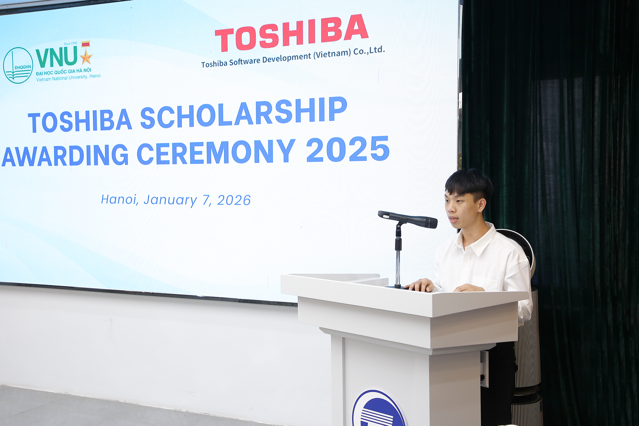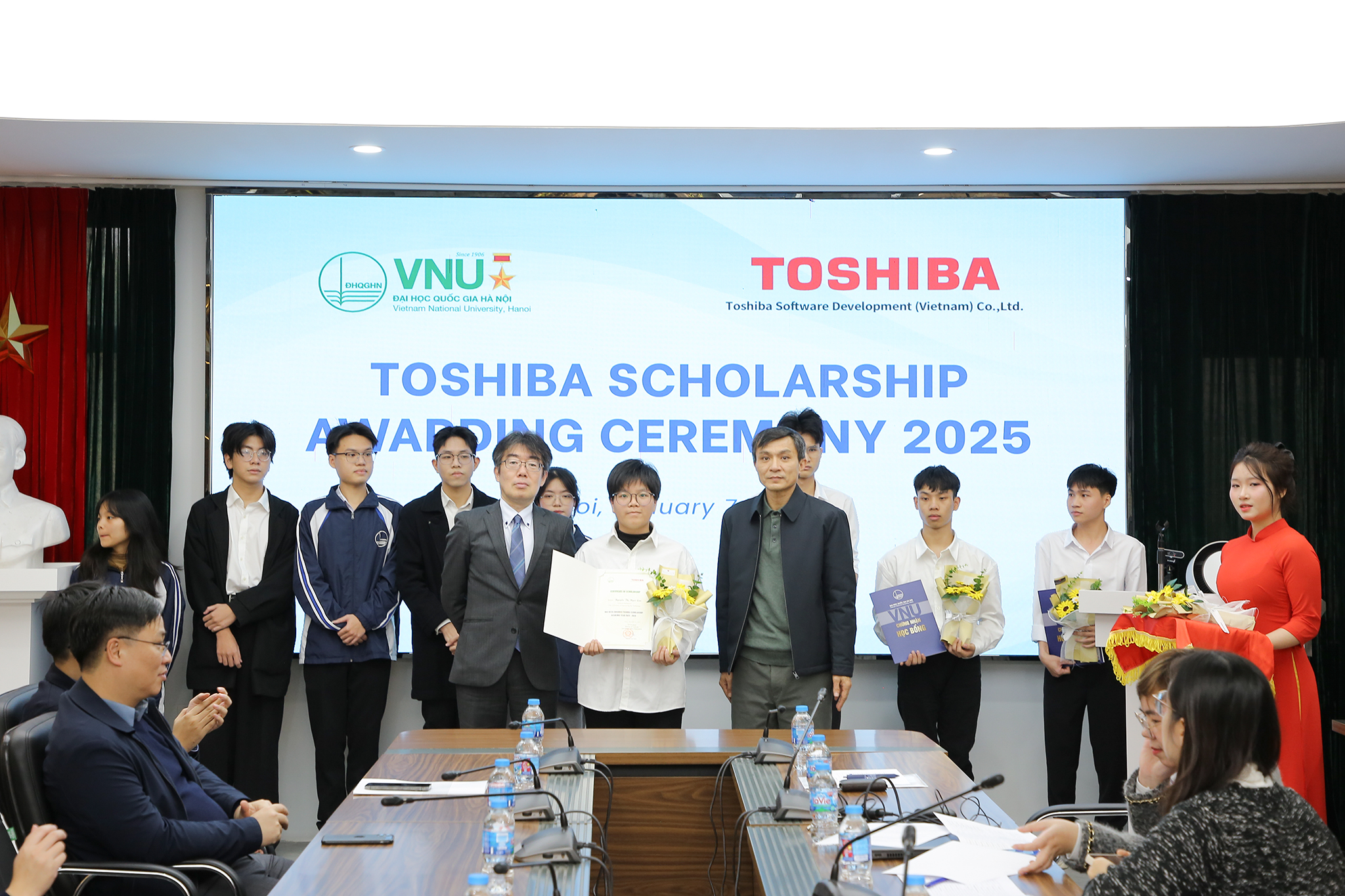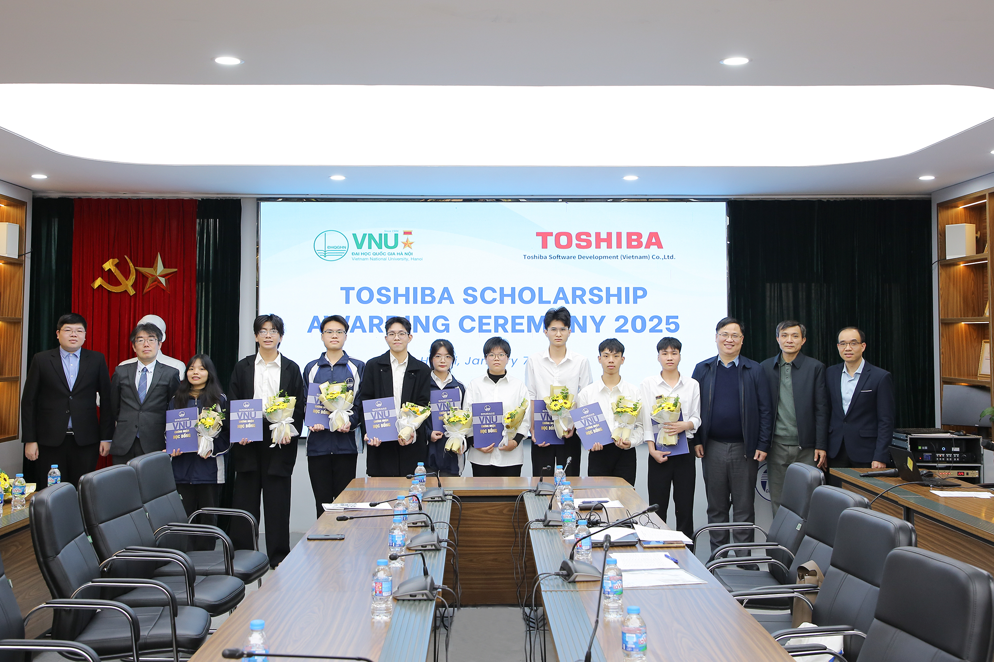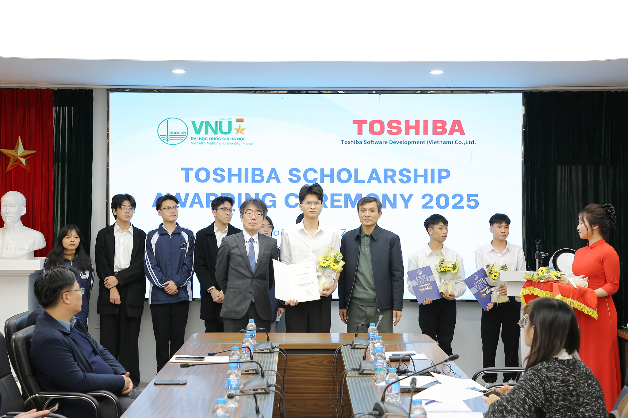 Ngày 07/01/2026, Đại học Quốc gia Hà Nội (ĐHQGHN) và Quỹ học bổng Toshiba đã tổ chức Lễ trao học bổng Toshiba năm học 2025-2026 cho 20 sinh viên xuất sắc của ĐHQGHN, với tổng giá trị học bổng tài trợ là 200 triệu đồng. Trong đó, Trường ĐH Công nghệ vinh dự có 10 sinh viên nhận học bổng năm học 2025-2026.