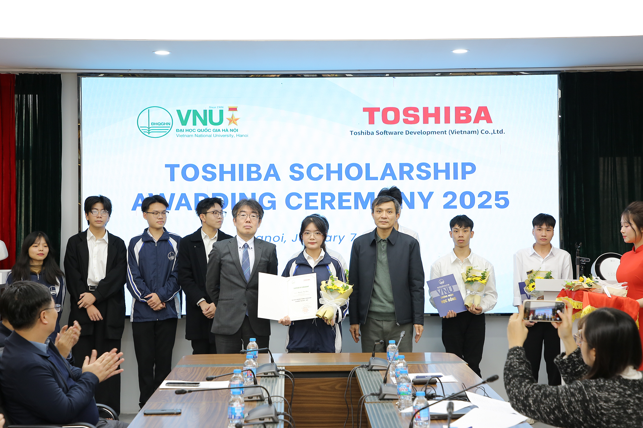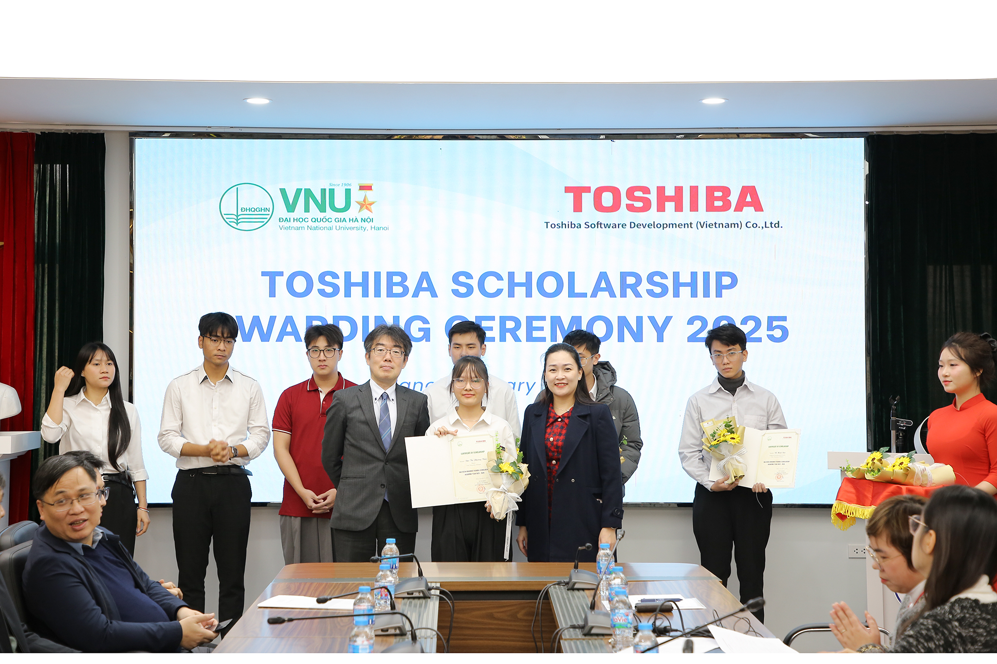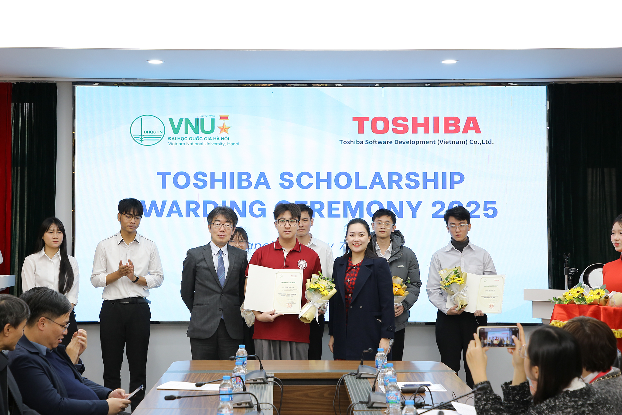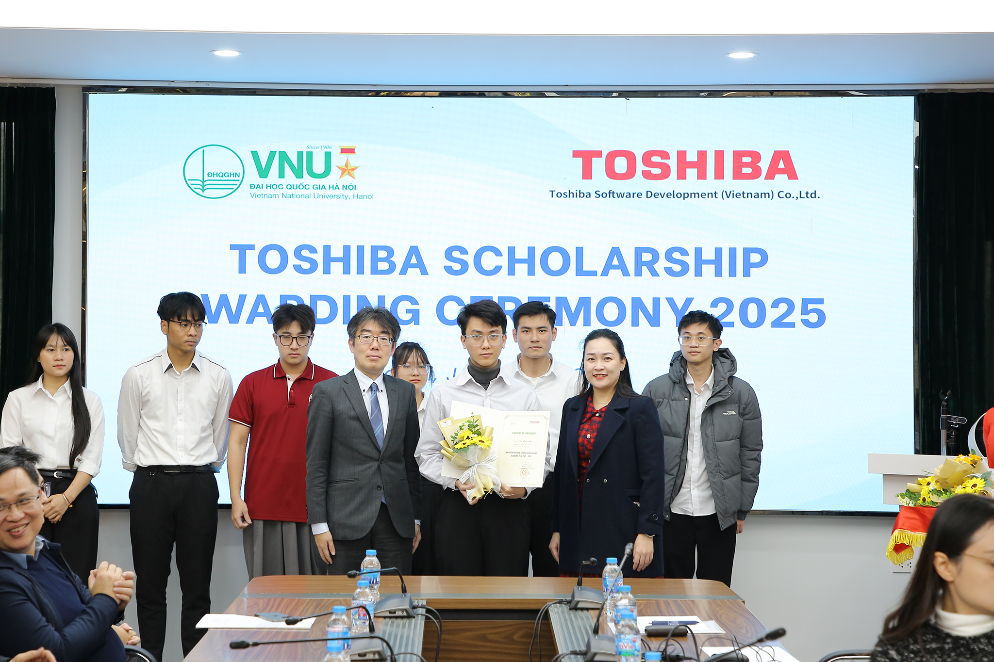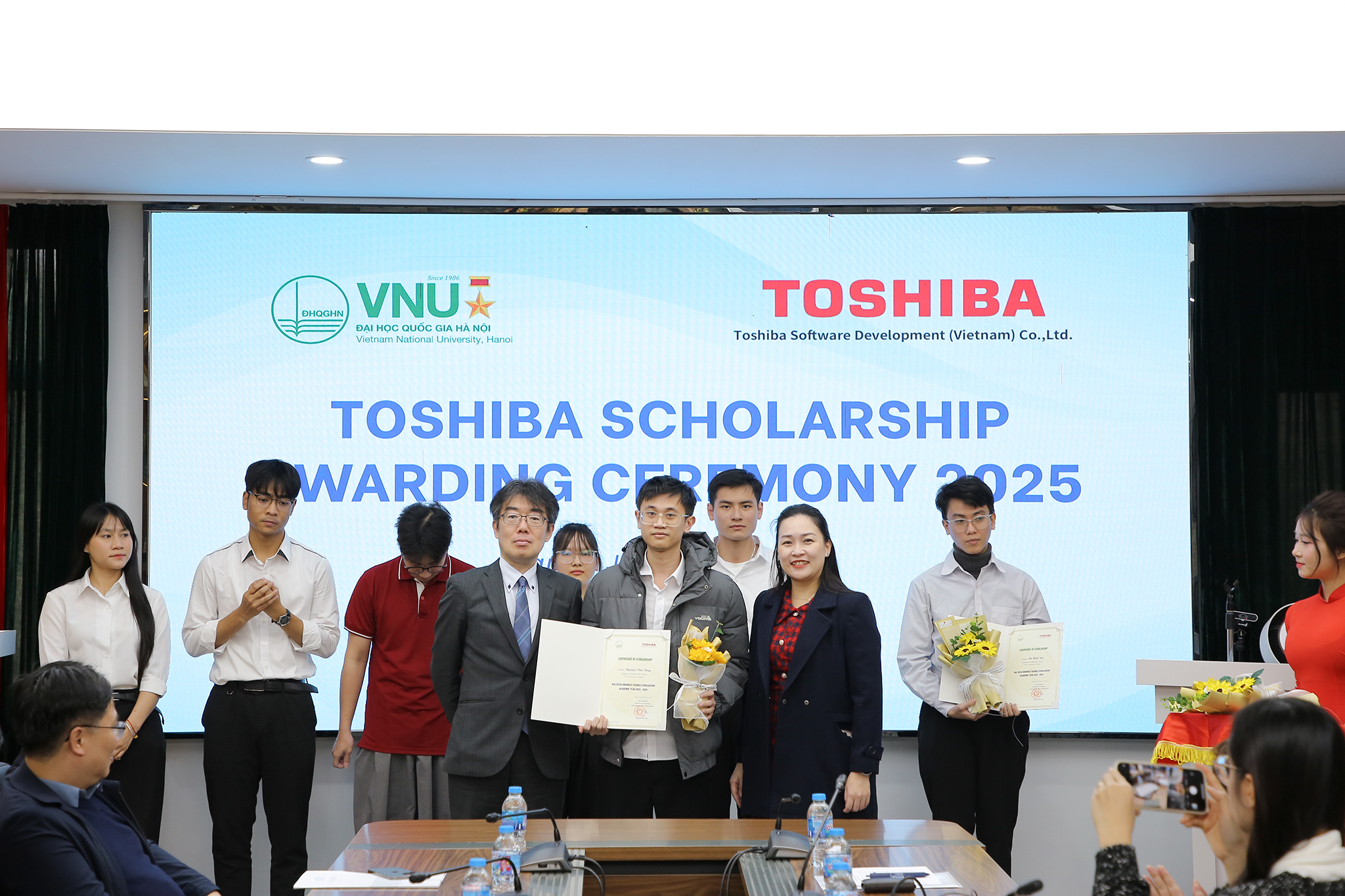 20 năm về trước, ngày 14/3/2005, ĐHQGHN và Quỹ học bổng Toshiba, Nhật Bản đã ký kết bản thỏa thuận hợp tác về chương trình trao học bổng cho học viên cao học, nghiên cứu sinh xuất sắc. Đã có khoảng gần 350 NCS, HVCH và SV tiêu biểu của ĐHQGHN đã được nhận học bổng từ Quỹ học bổng Toshiba. Đến tháng 12/2025 vừa qua, ĐHQGHN và Công ty TNHH Phát triển phần mềm Toshiba Việt Nam đã ký kết thỏa thuận về Chương trình học bổng Toshiba triển khai cho đối tượng sinh viên, với 20 sinh viên đang học tập và nghiên cứu thuộc các ngành có liên quan đến các lĩnh vực kinh doanh của Công ty, có kết quả học tập đạt loại giỏi trở lên, học bổng trị giá 10 triệu đồng/sinh viên.