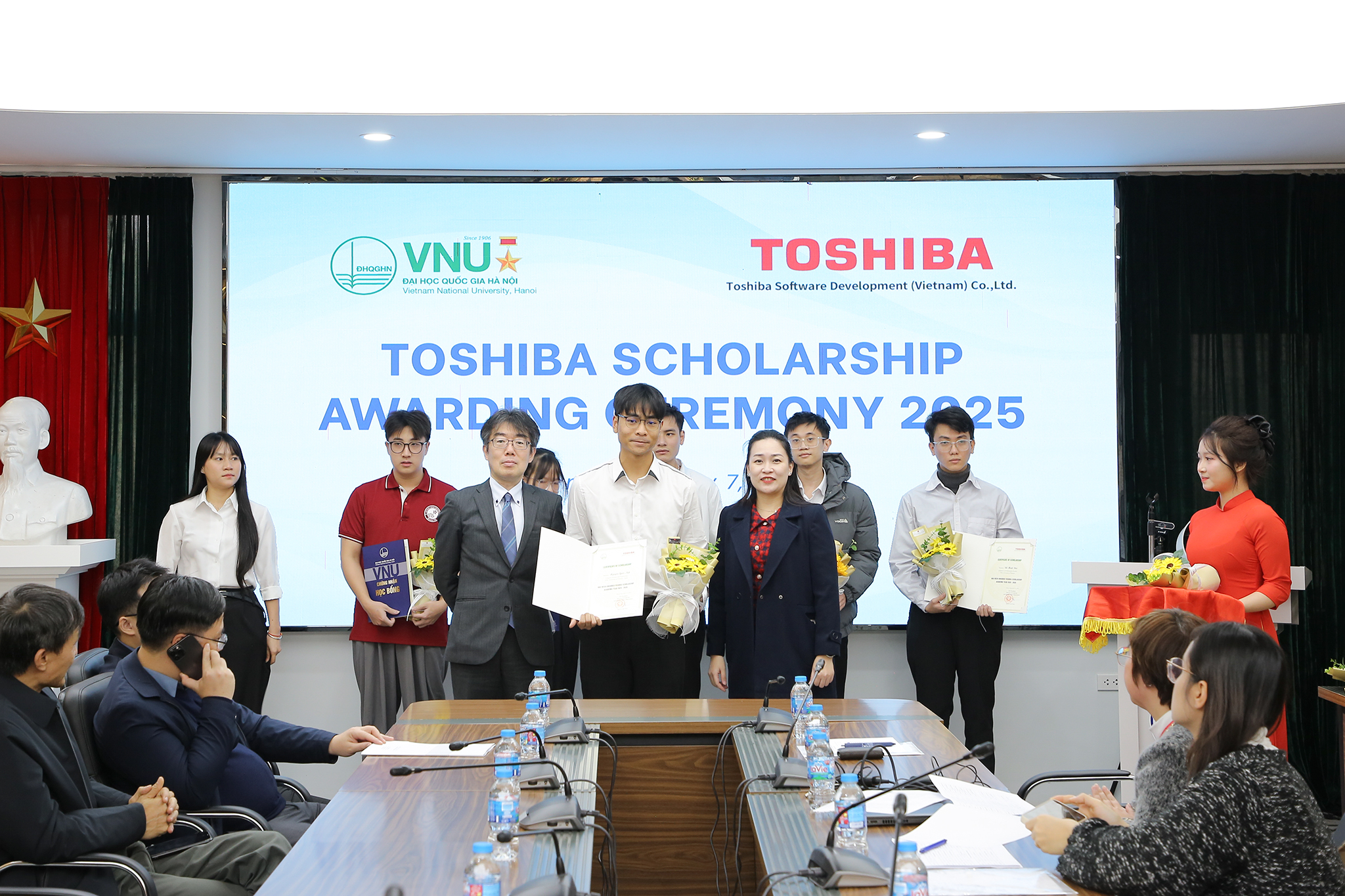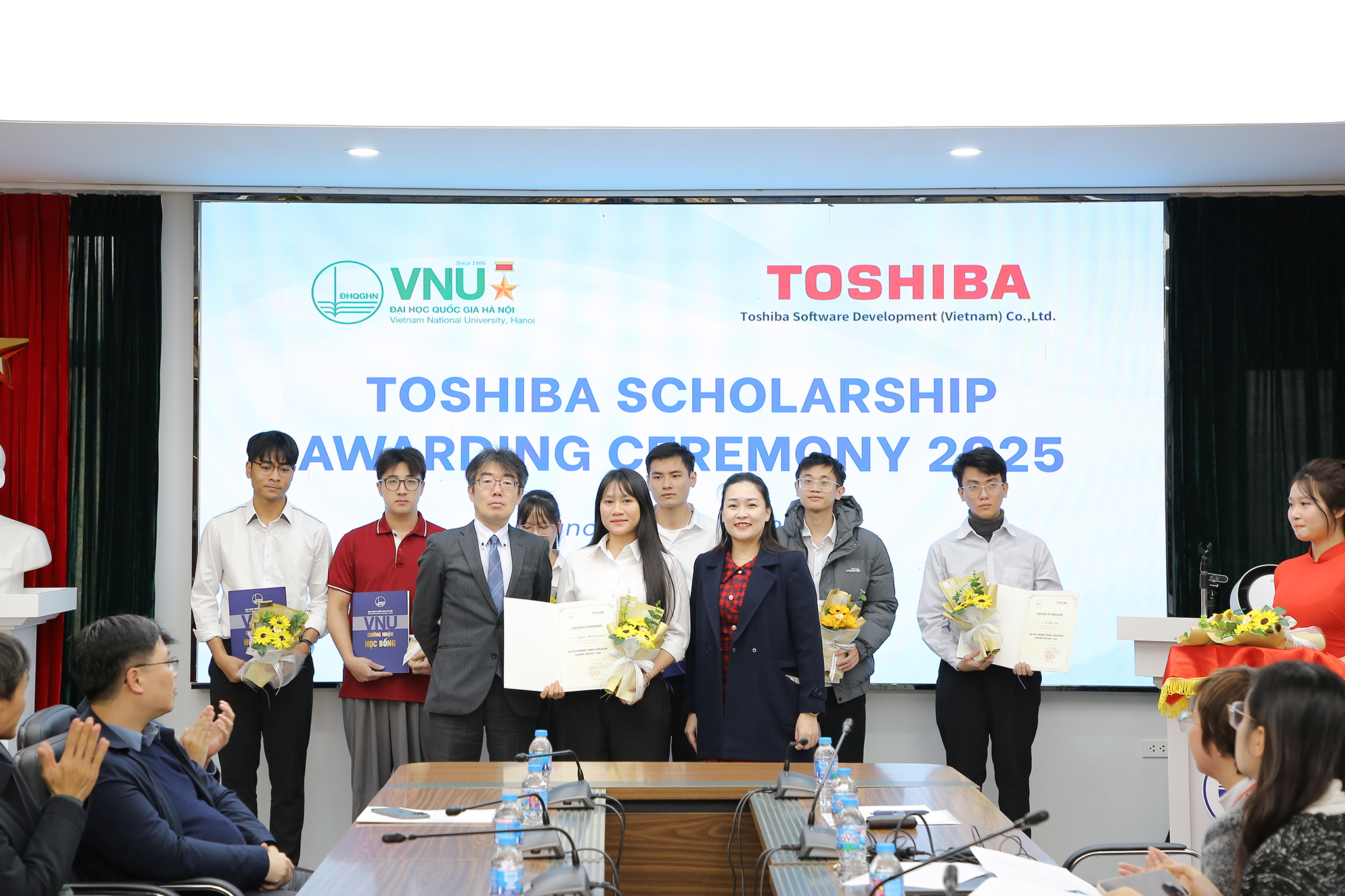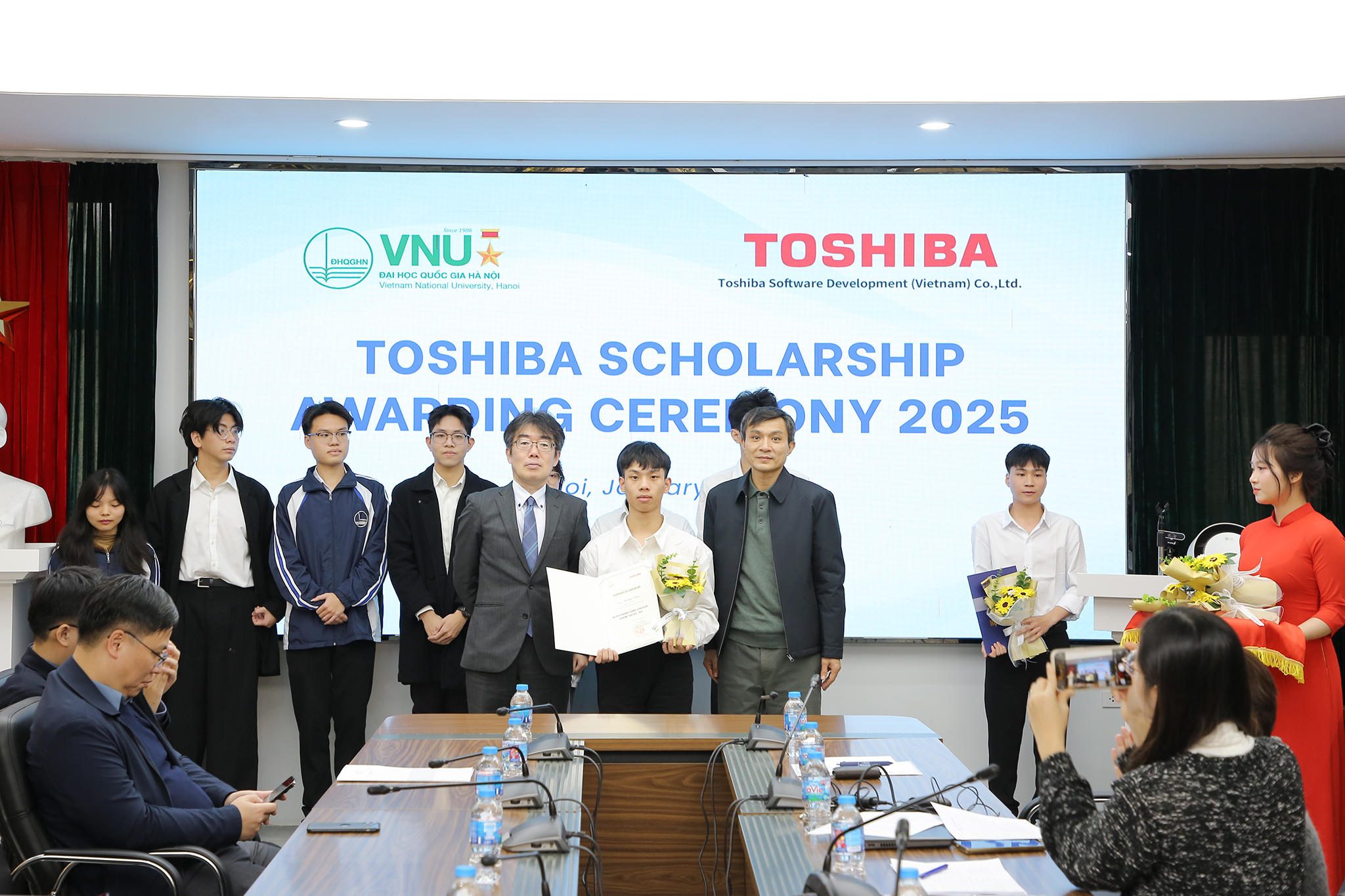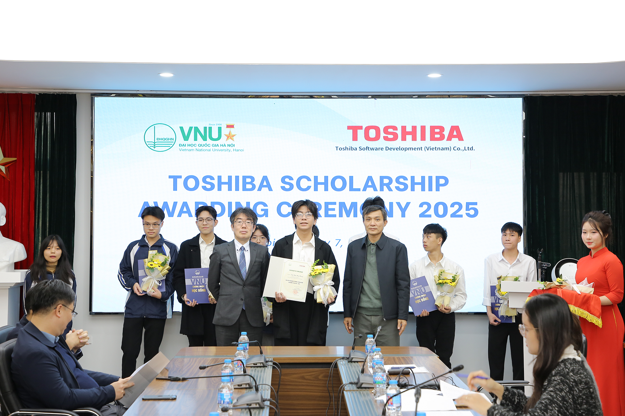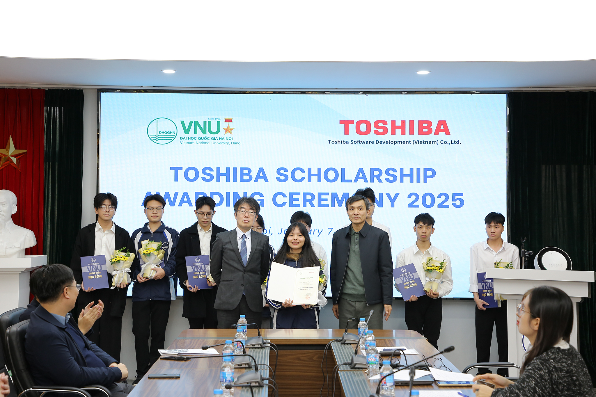 20 năm về trước, ngày 14/3/2005, ĐHQGHN và Quỹ học bổng Toshiba, Nhật Bản đã ký kết bản thỏa thuận hợp tác về chương trình trao học bổng cho học viên cao học, nghiên cứu sinh xuất sắc. Đã có khoảng gần 350 NCS, HVCH và SV tiêu biểu của ĐHQGHN đã được nhận học bổng từ Quỹ học bổng Toshiba. Đến tháng 12/2025 vừa qua, ĐHQGHN và Công ty TNHH Phát triển phần mềm Toshiba Việt Nam đã ký kết thỏa thuận về Chương trình học bổng Toshiba triển khai cho đối tượng sinh viên, với 20 sinh viên đang học tập và nghiên cứu thuộc các ngành có liên quan đến các lĩnh vực kinh doanh của Công ty, có kết quả học tập đạt loại giỏi trở lên, học bổng trị giá 10 triệu đồng/sinh viên.