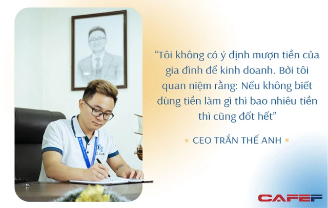 Số tiền được tiết kiệm từ số tiền làm thêm thời sinh viên và huy động từ 4 người bạn khác. “Tôi không có ý định mượn tiền của gia đình để kinh doanh. Bởi tôi quan niệm rằng: Nếu không biết dùng tiền làm gì thì bao nhiêu tiền thì cũng đốt hết”, Thế Anh chia sẻ.