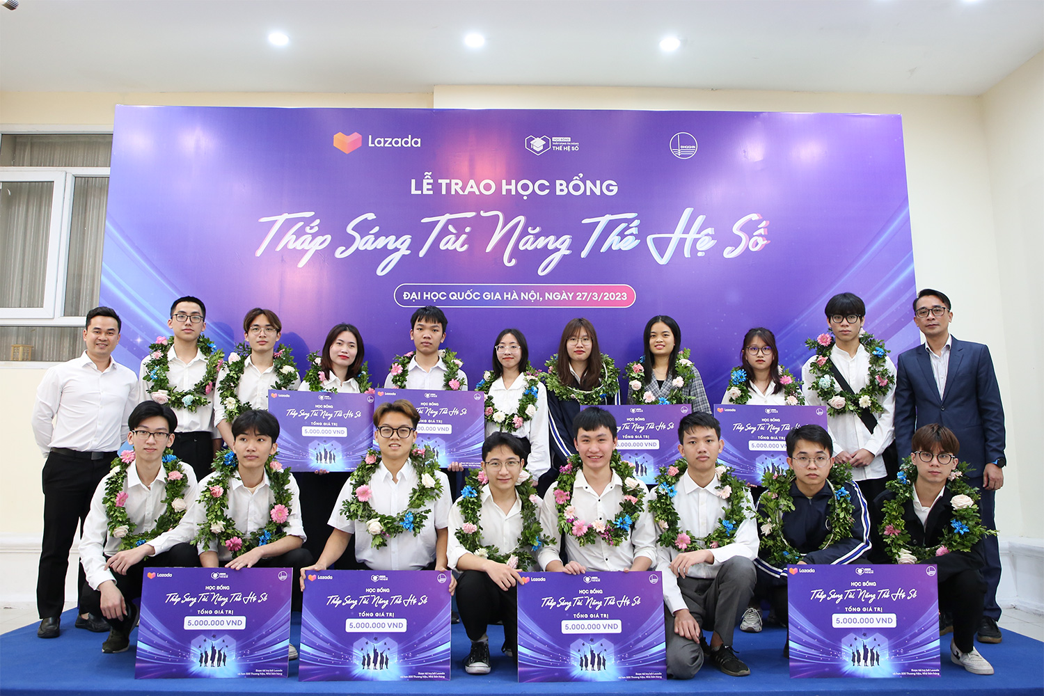 Học bổng “Thắp sáng tài năng thế hệ số” là học bổng dành cho sinh viên có hoàn cảnh khó khăn vươn lên đạt kết quả trong học tập và rèn luyện tốt thuộc các ngành đào tạo Công nghệ thông tin và Khoa học máy tính (Trường Đại học Công nghệ); Công nghệ tài chính và kinh doanh số, Công nghệ thông tin ứng dụng và kinh doanh quốc tế (Trường Quốc tế); Quản trị kinh doanh, Kinh tế và Kinh tế quốc tế (Trường Đại học Kinh tế).