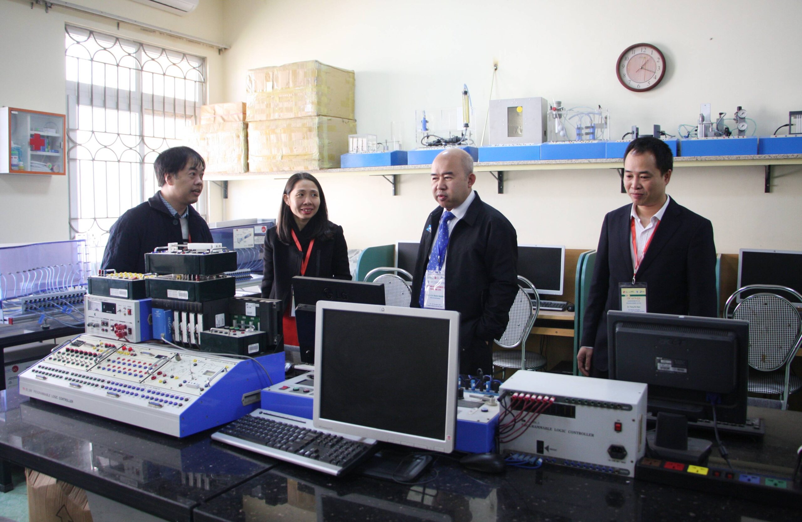 Đoàn đánh gia tham quan phòng thí nghiệm của khoa Cơ học kỹ thuật và Tự động hóa