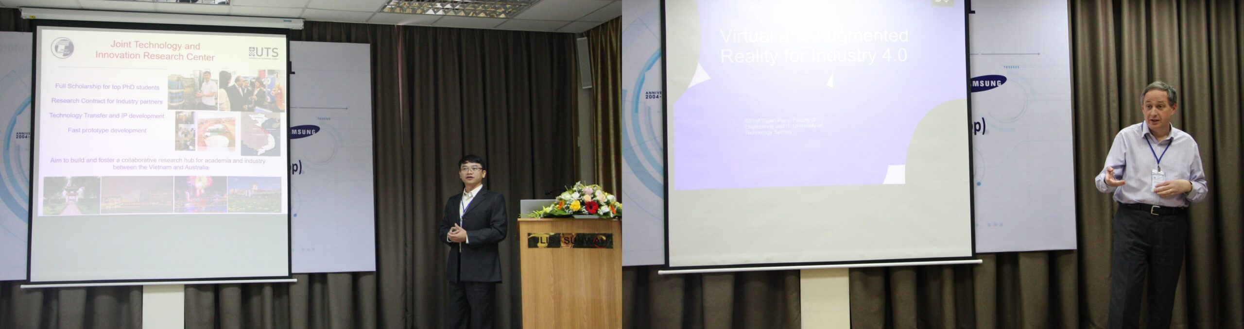 Tham gia hội thảo về phía trường ĐHCN có PGS.TS. Phạm Bảo Sơn – Phó Hiệu trưởng; PGS.TS. Trần Xuân Tú – Trưởng phòng KHCN&HTPT. Về phía Đại học Công nghệ Sydney có sự tham dự của GS. Eryk Dutkiewicz – Chủ nhiệm Khoa Điện toán và Truyền thông.