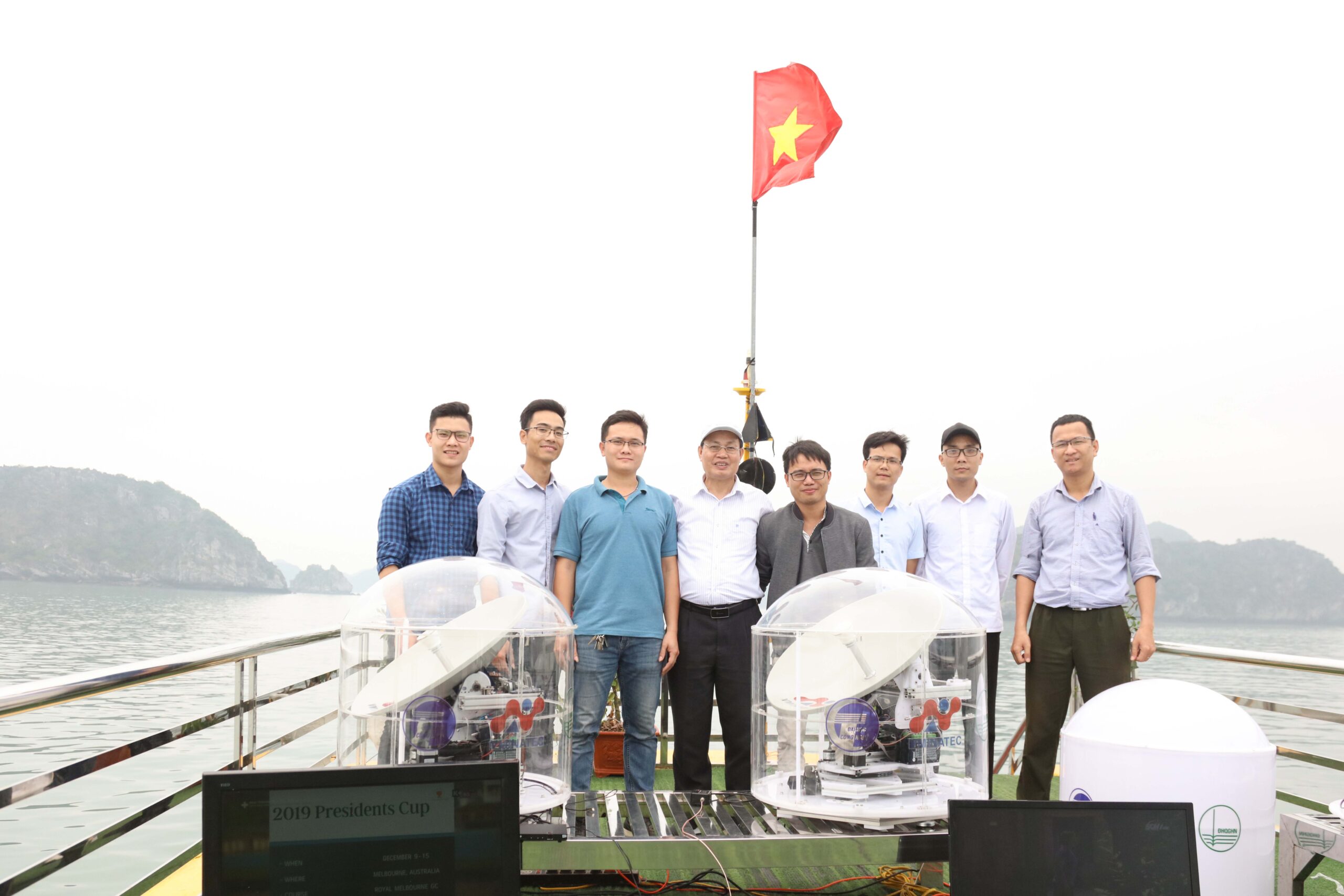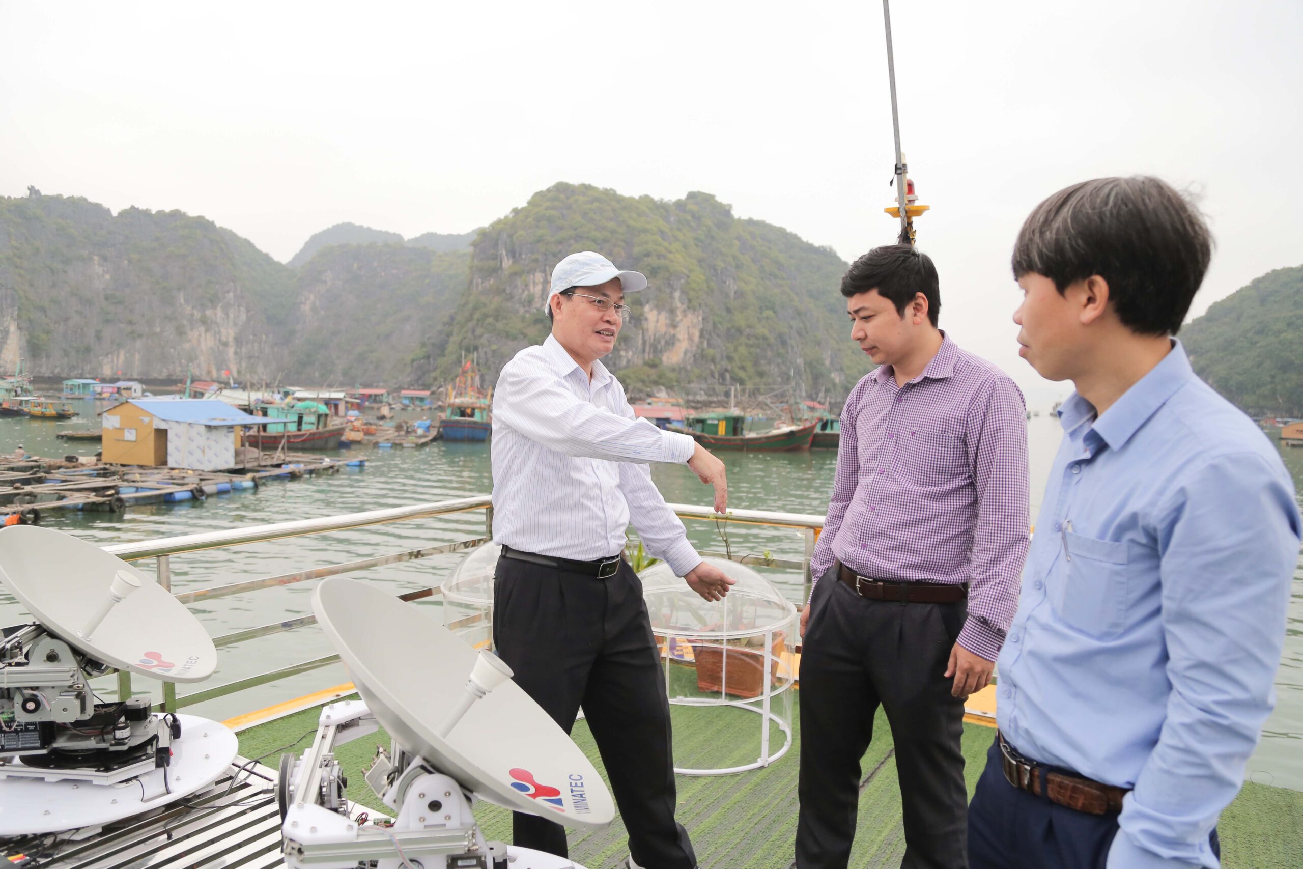 Lần đầu tiên tại Việt Nam có một đơn vị triển khai nghiên cứu phát triển sản phẩm thương mại hóa trạm thu di động tín hiệu truyền hình vệ tinh ứng dụng trên tàu biển. Đây là đề tài khoa học và công nghệ cấp ĐHQGHN do Trường ĐH Công nghệ chủ trì và Phòng Thí nghiệm Trọng điểm Công nghệ Micro – Nano triển khai thực hiện. Vừa qua, GS.TS. Nguyễn Hữu Đức – Giám đốc Phòng Thí nghiệm, chủ nhiệm đề tài cùng các nhà khoa học thuộc Trường ĐH Công nghệ, ĐHQGHN và đơn vị phối hợp là Viện Điện – Trường ĐH Bách Khoa Hà Nội đã tới kiểm tra công tác chạy thử sản phẩm tại thị trấn Cát Bà, Hải Phòng.