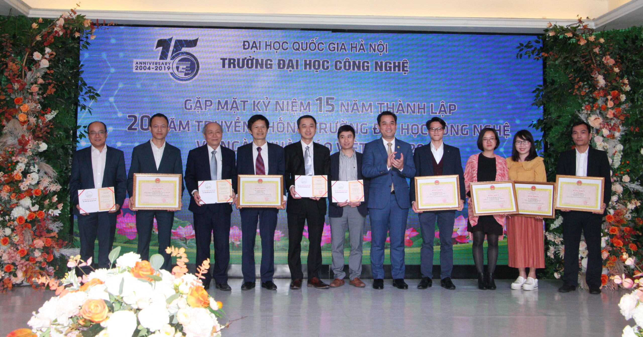 Nhân dịp kỷ niệm 15 năm thành lập (25/05/2004 – 25/05/2019), 20 năm truyền thống (18/10/1999 – 18/10/2019) và chào mừng ngày Nhà giáo Việt Nam 20/11, Trường Đại học Công nghệ đã trang trọng tổ chức gặp mặt các thế hệ cán bộ, giảng viên trong toàn trường, vào ngày 20/11/2019.