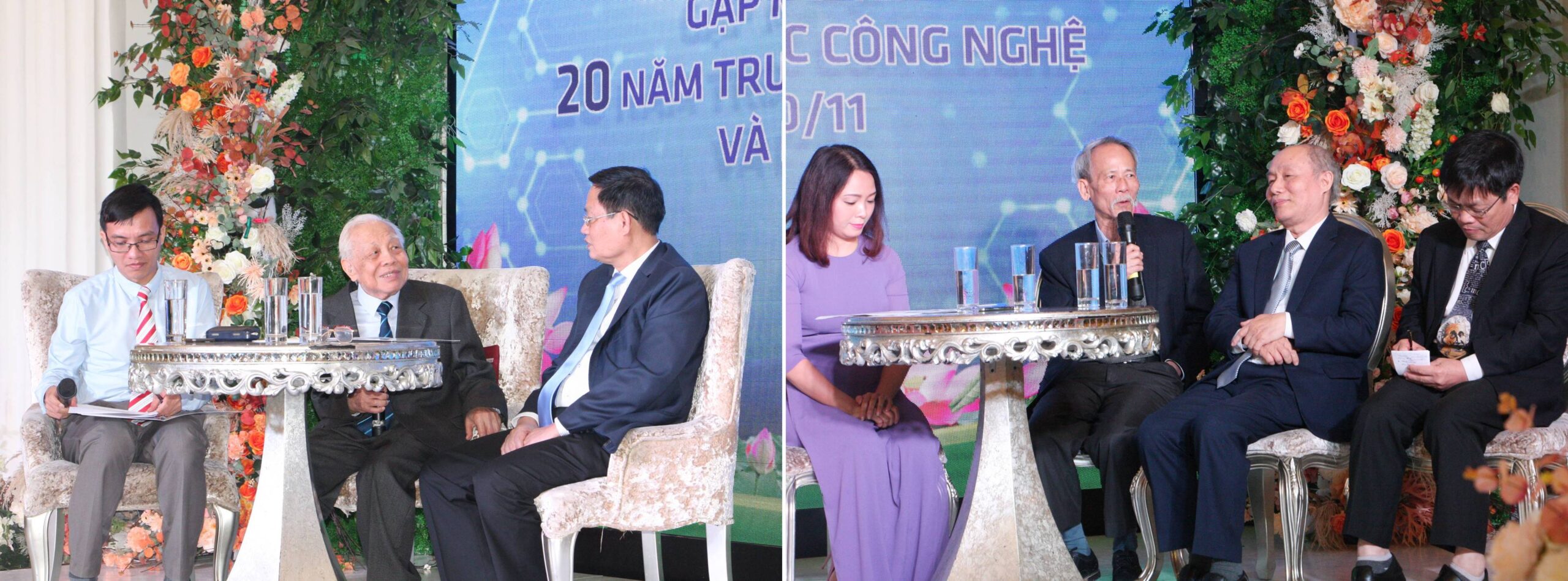Tại buổi giao lưu GS.VS. Nguyễn Văn Hiệu, GS.TS. Nguyễn Hữu Đức, PGS.TS. Hồ Sĩ Đàm, PGS.TS. Hà Quang Thụy và GS.TS. Nguyễn Thanh Thủy đã chia sẻ những kỷ niệm về việc thành lập khoa Công nghệ và Trường ĐHCN, quyết sách sáng tạo, triết lý phát triển có tầm nhìn