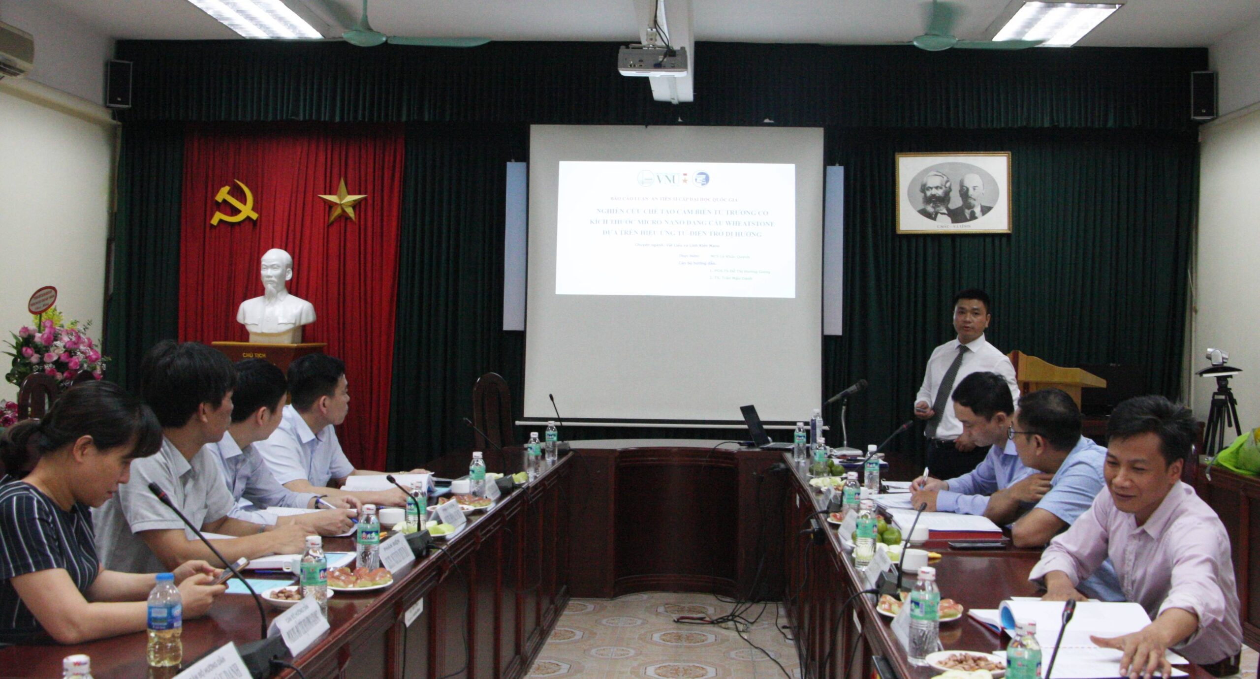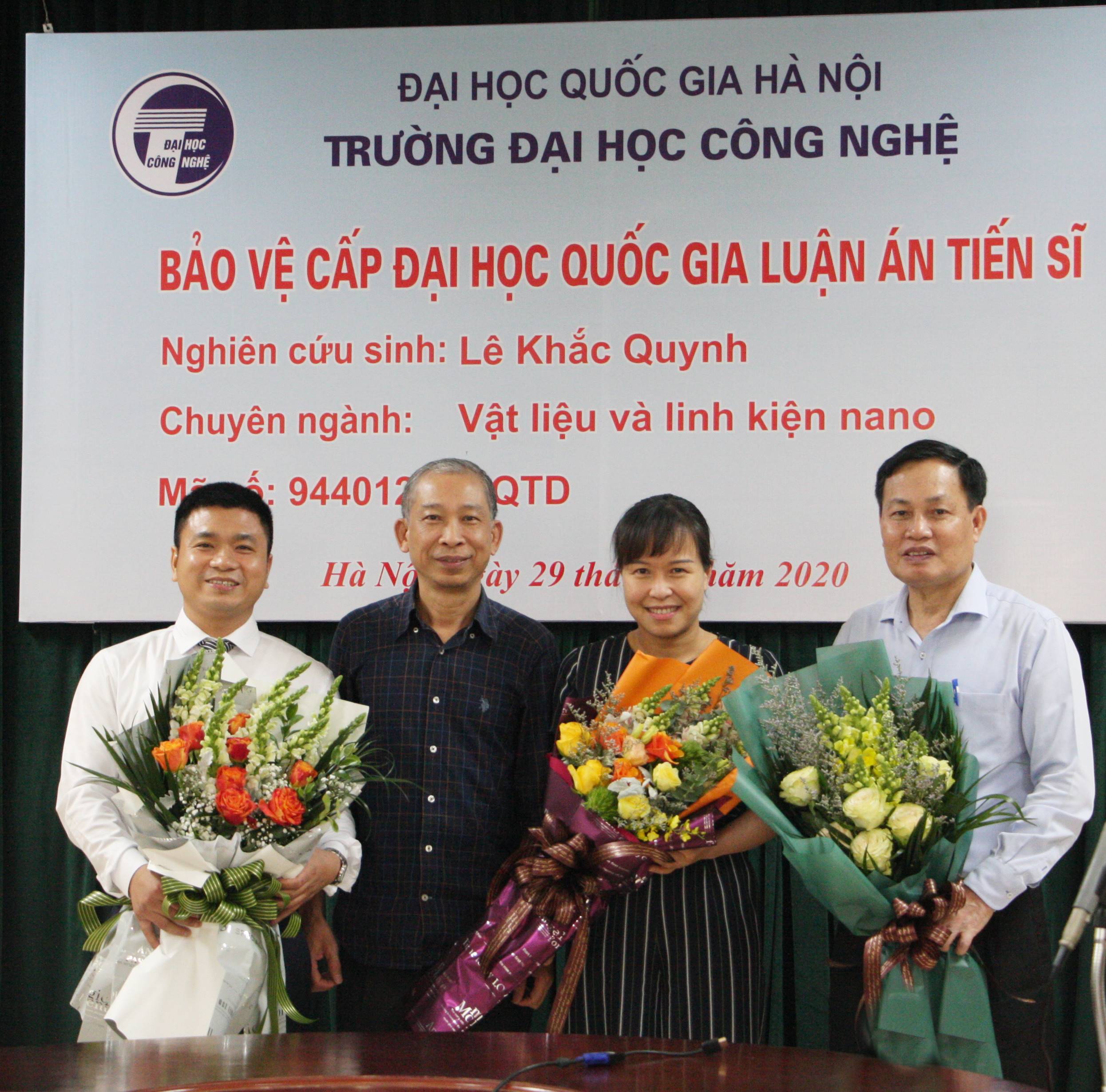 Hội đồng cấp ĐHQG chấm luận án tiến sĩ gồm GS.TS. Hoàng Nam Nhật – Trường ĐHCN, Chủ tịch Hội đồng; TS. Bùi Đình Tú – Trường ĐHCN, Thư ký Hội đồng; Các phản biện gồm GS.TS. Nguyễn Huy Dân – Viện Khoa học vật liệu (Viện Hàn lâm KH&CN Việt Nam); PGS.TS. Đỗ Danh Bích – Trường Đại học Sư phạm Hà Nội; PGS.TS. Lê Anh Tuấn – Trường Đại học Phenikaa. Các ủy viên gồm PGS.TS. Nguyễn Phúc Dương – Trường Đại học Bách khoa Hà Nội, PGS.TS. Trần Đăng Thành – Viện Khoa học vật liệu (Viện Hàn lâm KH&CN Việt Nam).