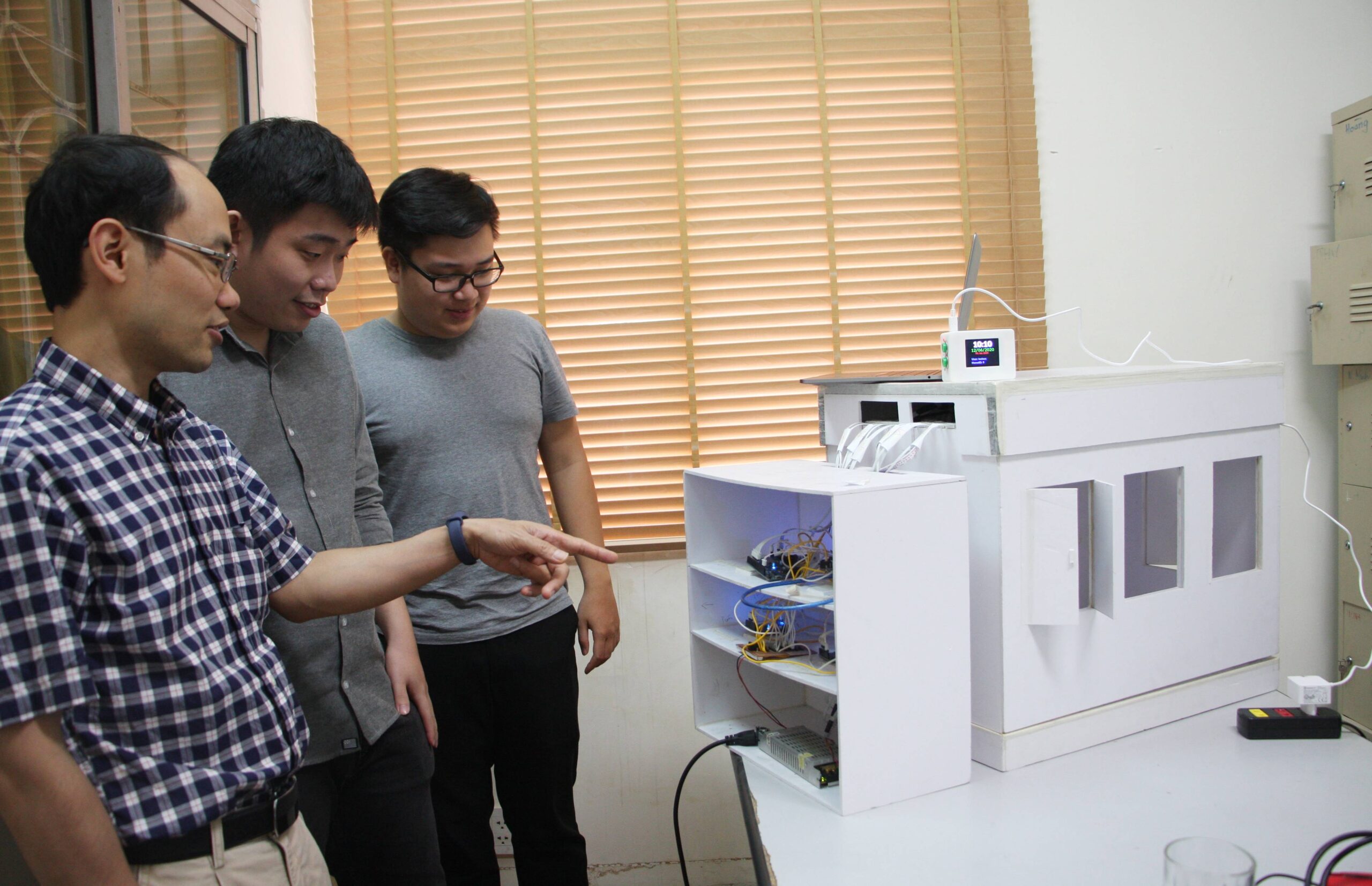 PGS.TS. Nguyễn Hoài Sơn định hướng đề tài và hướng dẫn cho SV Ngô Minh Hoàng (đứng giữa) và SV Dương Quang Khải
