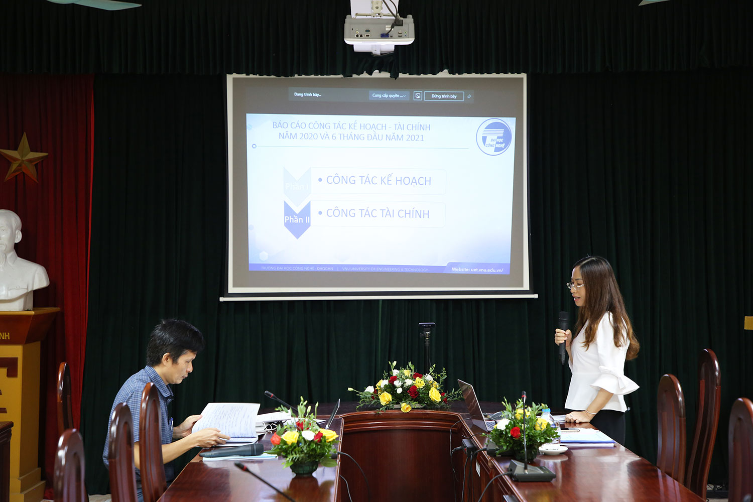 Trong bối cảnh giãn cách do sự phức tạp của dịch Covid-19, Trường Đại học Công nghệ đã tổ chức Hội nghị tài chính trực tuyến qua MS Team nhằm đánh giá tình hình thực hiện công tác tài chính năm 2020 và kết quả thực hiện 6 tháng đầu năm 2021, vào ngày 23/08/2021.