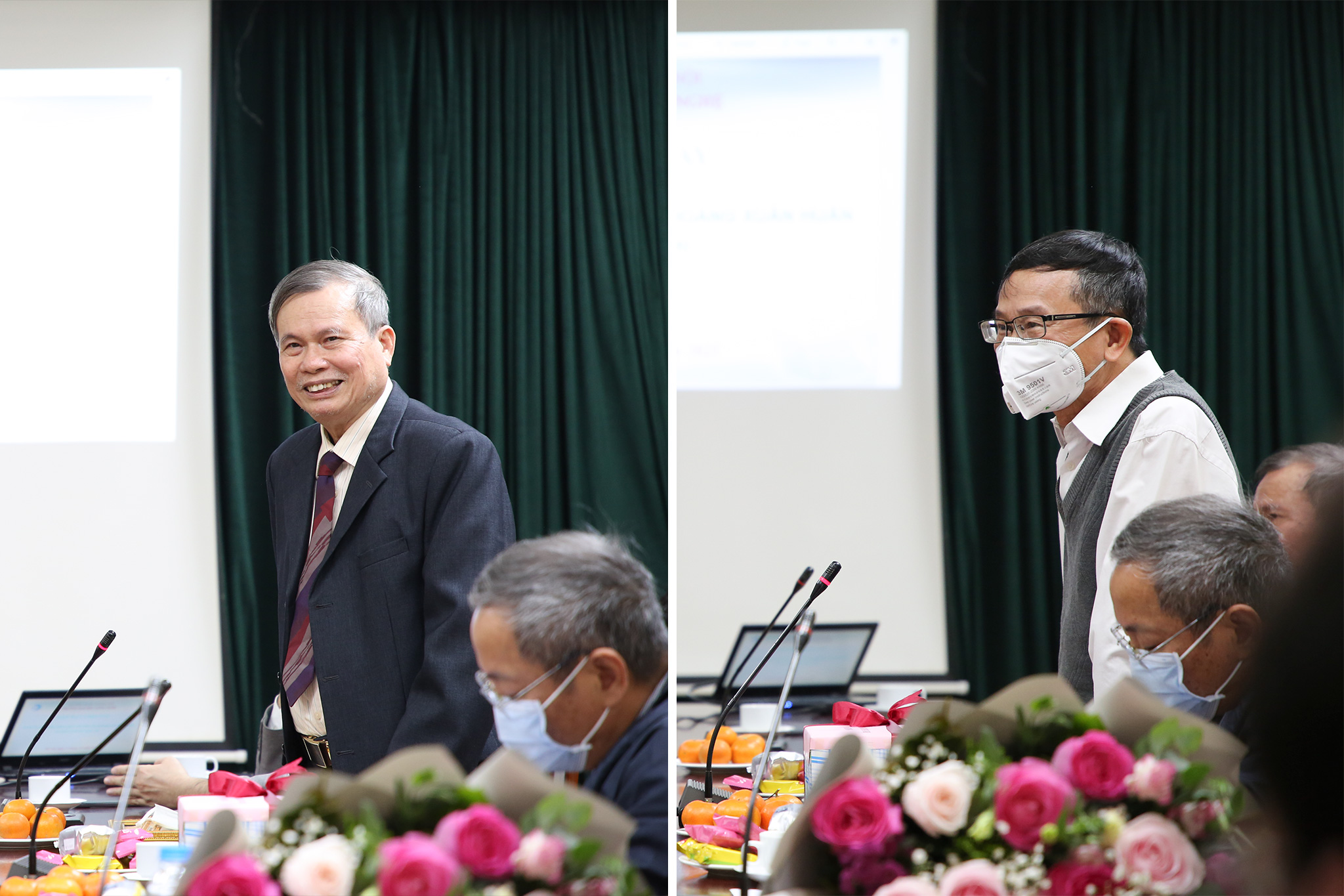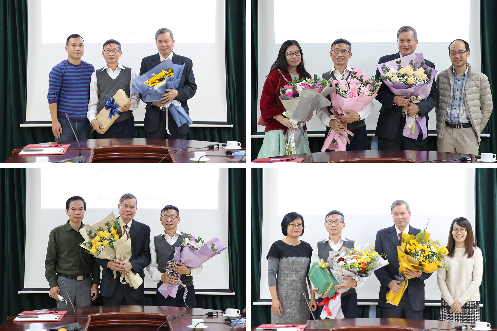 Để tri ân những cống hiến của PGS.TS. Nguyễn Đình Việt và PGS.TS. Hoàng Xuân Huấn, đại diện các đơn vị đã có những bó hoa tươi thắm và món quà ý nghĩa tại buổi chia tay.