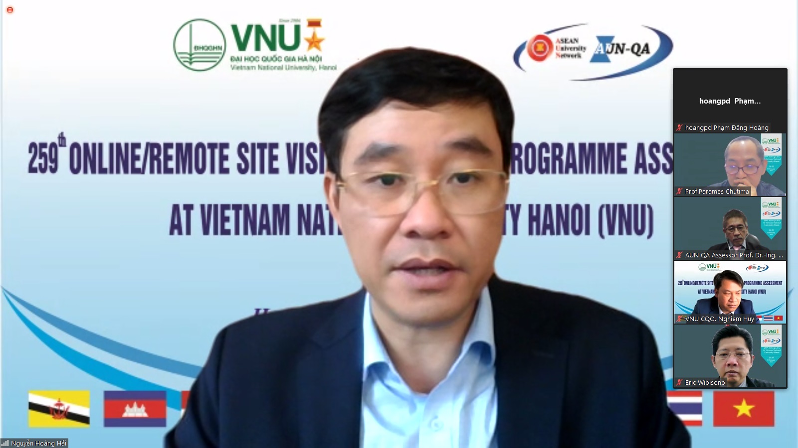 PGS.TS Eric Wibisono, Trưởng đoàn đánh giá ngoài cho biết, trước những khó khăn và thách thức mà dịch bệnh gây ra, AUN và các trường đại học thành viên của mạng lưới đã nỗ lực thay đổi cách thức hoạt động, thích ứng nhanh với xu thế mới là chuyển qua hình thức trực tuyến, từ xa. Ông đánh giá cao nỗ lực của ĐHQGHN và các đơn vị thành viên đã chuẩn bị chu đáo mọi điều kiện cho phiên đánh giá này và tin tưởng vào hoạt động kiểm định của AUN.