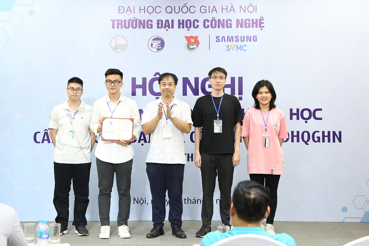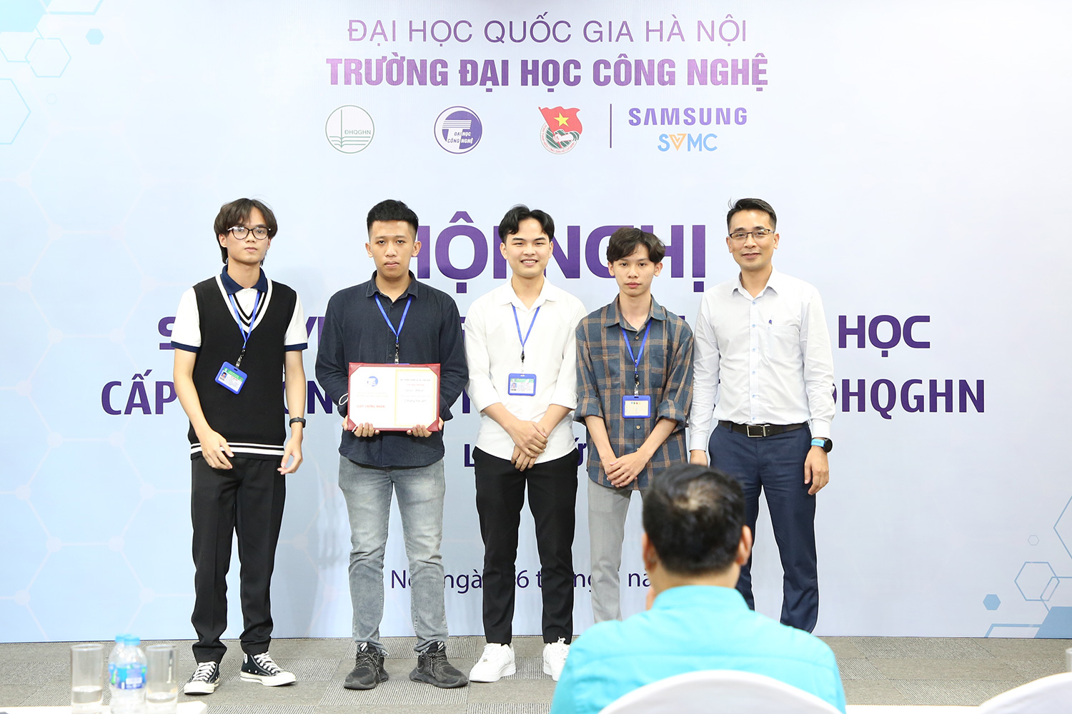 Sau hơn 4 tiếng làm việc nghiêm túc, Hội nghị đã kết thúc thành công, 18 công trình được Hội đồng trao thưởng và đánh giá cao về tính đổi mới sáng tạo, giải quyết các vấn đề cấp thiết với phương pháp nghiên cứu đa dạng, đặc biệt là tính ứng dụng thực tiễn; đồng thời, chọn ra các công trình xuất sắc nhất để đề cử tham dự Giải thưởng nghiên cứu khoa học sinh viên cấp ĐHQGHN, cấp Bộ Giáo dục và Đào tạo.