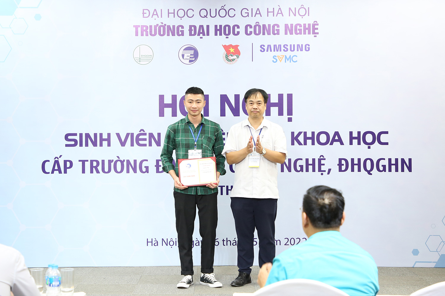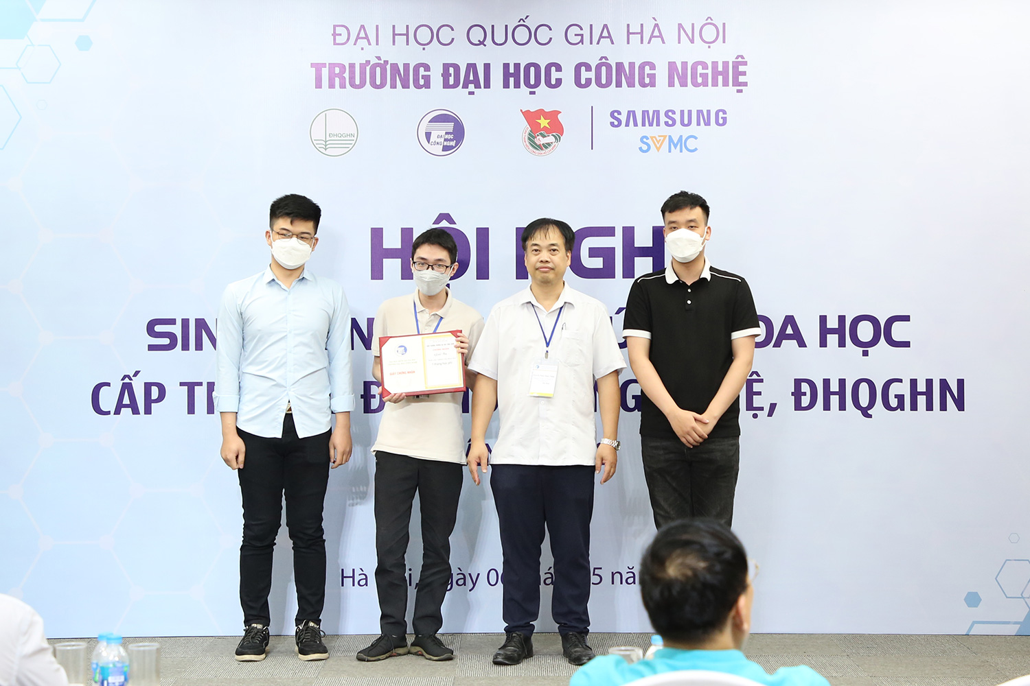 Ngày 06/05/2022, Hội nghị sinh viên nghiên cứu khoa học Trường Đại học Công nghệ – ĐHQGHN lần thứ 18 đã được tổ chức tại Hội trường Sunwah. Năm nay, tại các hội nghị sinh viên nghiên cứu cấp Khoa/Viện/Bộ môn có 07 giải Nhất, 07 giải Nhì, 15 giải Ba và 08 giải Khuyến khích, trong đó lựa chọn 24 công trình trình bày tại hội nghị cấp Trường.