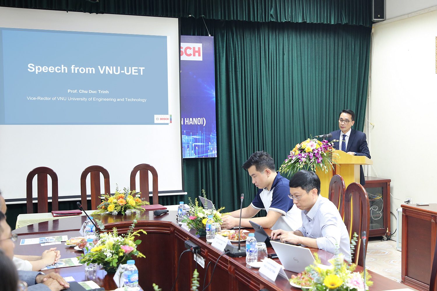 Ông Dattatrya Gaur – Giám đốc điều hành của BGSV nhấn mạnh: Sự hợp tác với các trường đại học nói chung và Trường ĐH Công nghệ nói riêng phù hợp với chiến lược phát triển của Bosch nhằm ươm mầm tài năng và thúc đẩy các đổi mới về khoa học công nghệ.