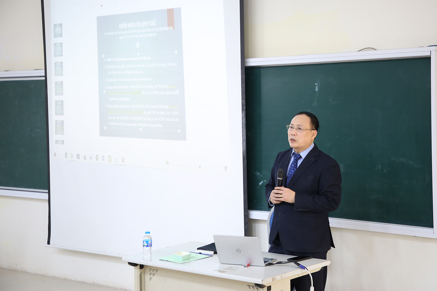 Đối với Quy chế đào tạo đại học, GS nhấn mạnh các điểm mới như thời gian ban hành, giao chỉ tiêu tuyển sinh, về cấu trúc và khối lượng chương trình đào tạo, trong đó chương trình đào tạo chất lượng cao được thiết kế nhiều hơn chương trình đào tạo chuẩn tương ứng ít nhất là 15 tín chỉ. Về các học phần ngoại ngữ, khác với Quy chế trước, Quy chế này quy định học phần ngoại ngữ trong chương trình đào tạo là học phần sinh viên bắt buộc phải học và lấy điểm tích lũy, và do đó được tính vào điểm trung bình chung trong kết quả học tập của toàn khóa. Những điểm mới trong quy chế thạc sĩ, tiến sĩ như chuẩn đầu ra về ngoại ngữ, quy định về giáo viên hướng dẫn, công bố quốc tế, …