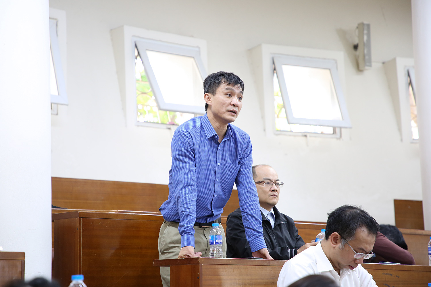GS.TS. Chử Đức Trình thay mặt lãnh đạo Nhà trường trả lời những câu hỏi, nội dung được nhiều cán bộ quan tâm