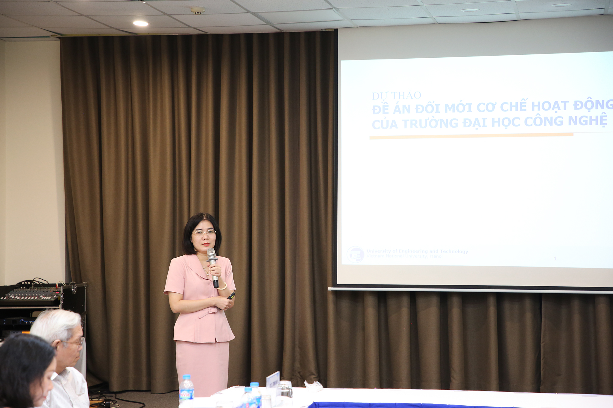 TS. Nguyễn Thu Hương – Phó Hiệu trưởng Trường ĐH Công nghệ trình bày Đề án đổi mới cơ chế hoạt động của Nhà trường