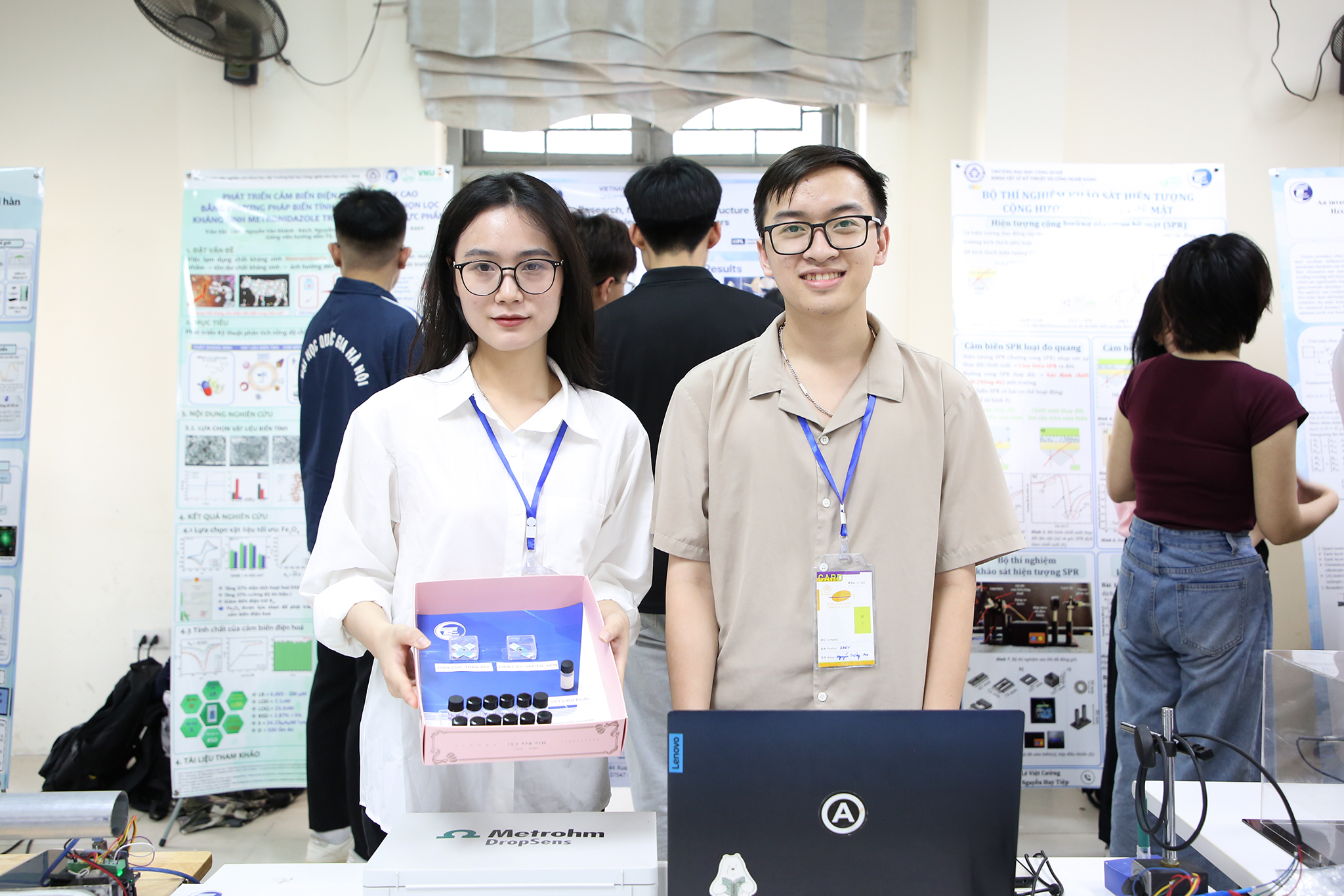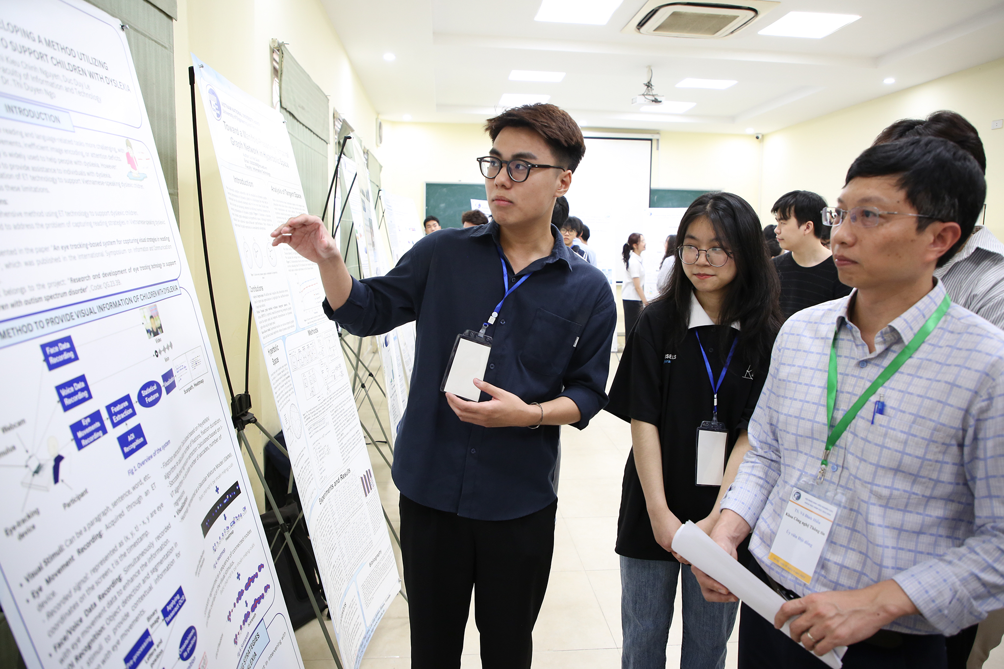Nhóm sinh viên khoa Công nghệ thông tin gồm Nguyễn Thị Kiều Chinh (QH-2021) và Lê Đức Duy (QH-2020) với đề tài: “Researching and Developing a Method Utilizing Eye-Tracking Technology to Support Children with Dyslexia” đạt giải Nhất tại hội nghị