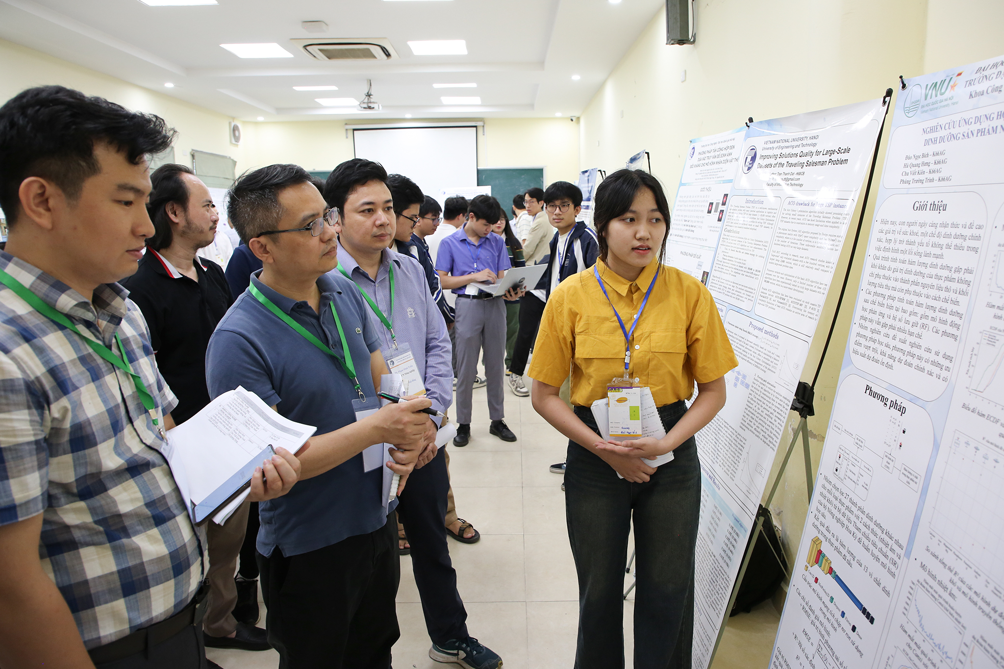 Tại Hội nghị, các nhóm sinh viên thuyết trình kết quả nghiên cứu bằng poster tại hội trường.