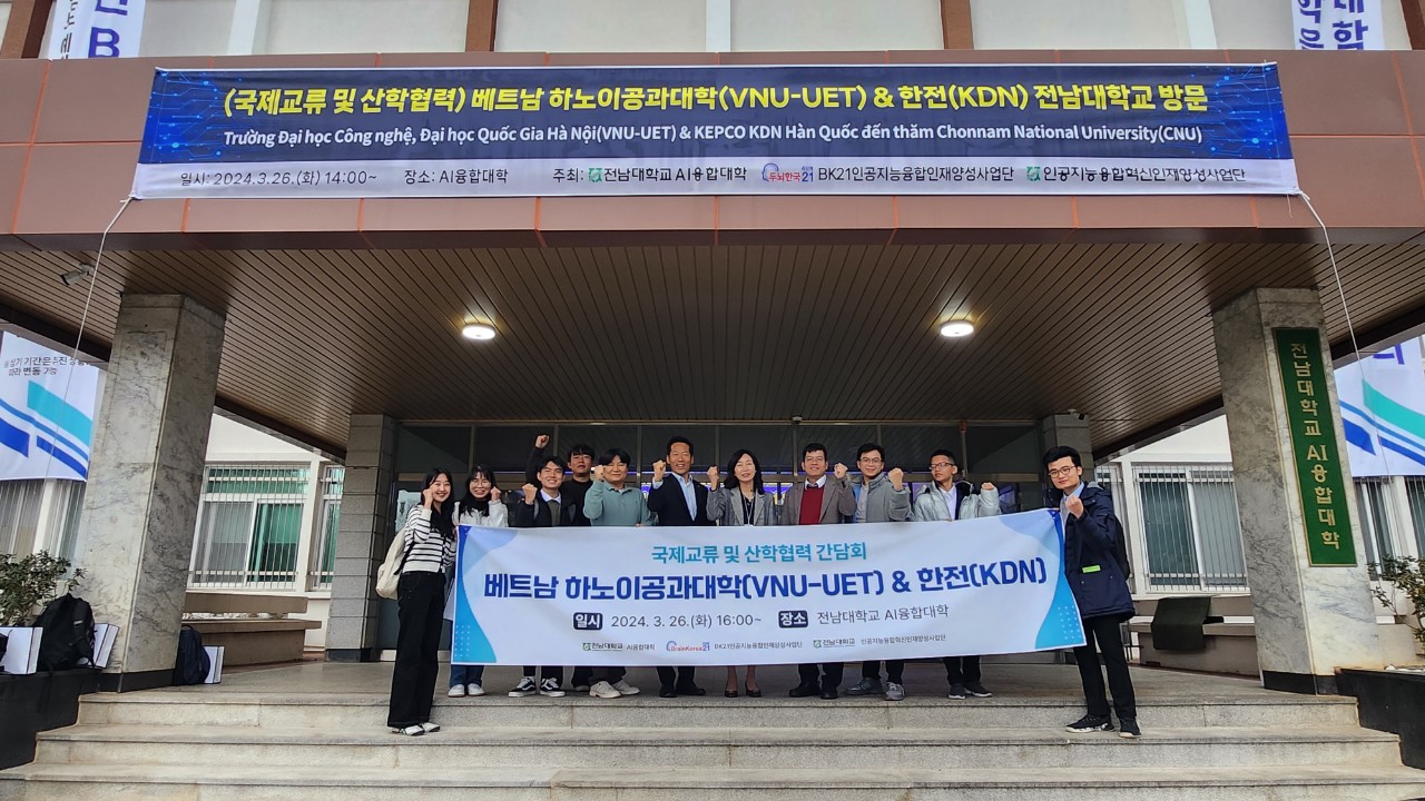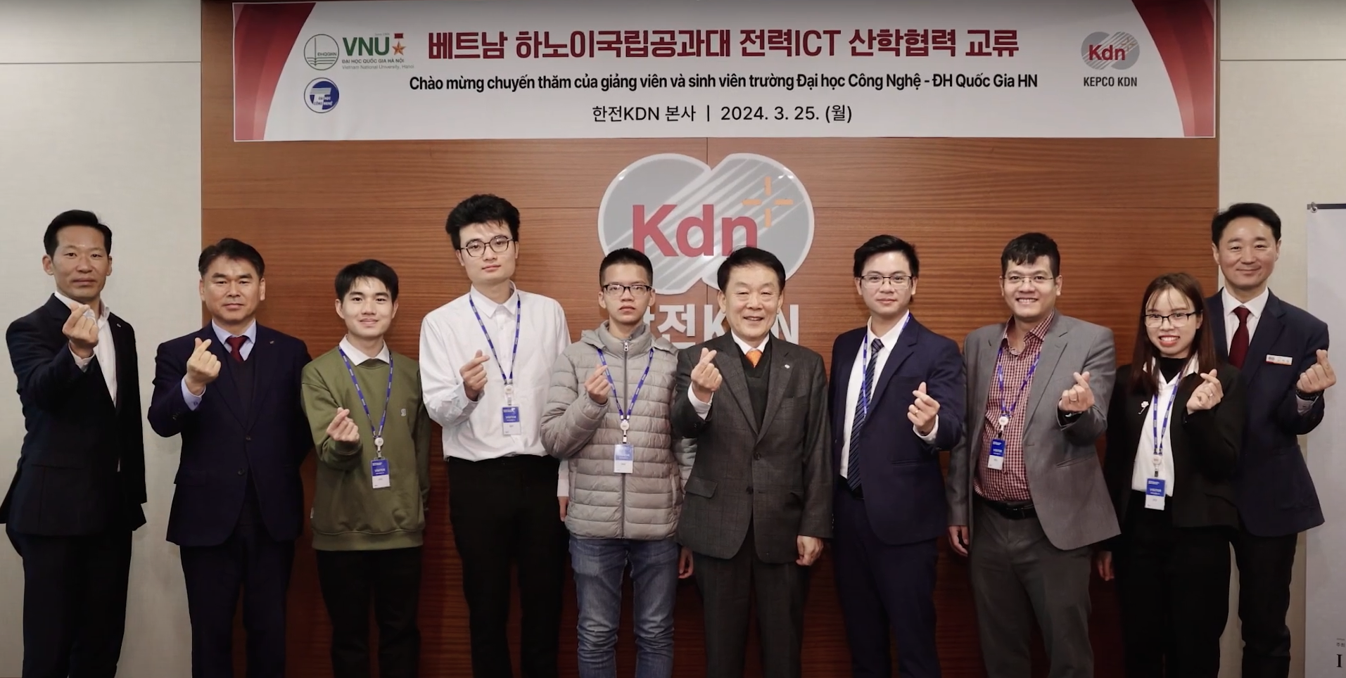 Sau lễ ký kết hợp tác vào tháng 5/2023 giữa Trường ĐH Công nghệ và Công ty Kepco KDN, Hàn Quốc, đến tháng 10/2023, 02 khóa học dành cho sinh viên Trường Đại học Công nghệ về Kiểm thử & đảm bảo chất lượng phần mềm; Các mô hình ngôn ngữ lớn & Ứng dụng được Công ty Kepco KDN tài trợ. Sau khóa học, Công ty đã chọn ra 03 sinh viên xuất sắc nhất mời sang Hàn Quốc tham quan và trải nghiệm môi trường doanh nghiệp thực tế từ ngày 23/3 đến ngày 27/3/2024. Trước chuyển đi, ba sinh viên Nguyễn Tuấn Đức, Đặng Tiến Dũng và Hoàng Văn Quyền đều rất phấn khích, hào hứng khi lần đầu tiên được tham quan Hàn Quốc – một quốc gia hiện đại và phát triển, đặc biệt là được lĩnh hội những tri thức mới và trải nghiệm môi trường doanh nghiệp quốc tế trong lĩnh vực điện lực ICT.
