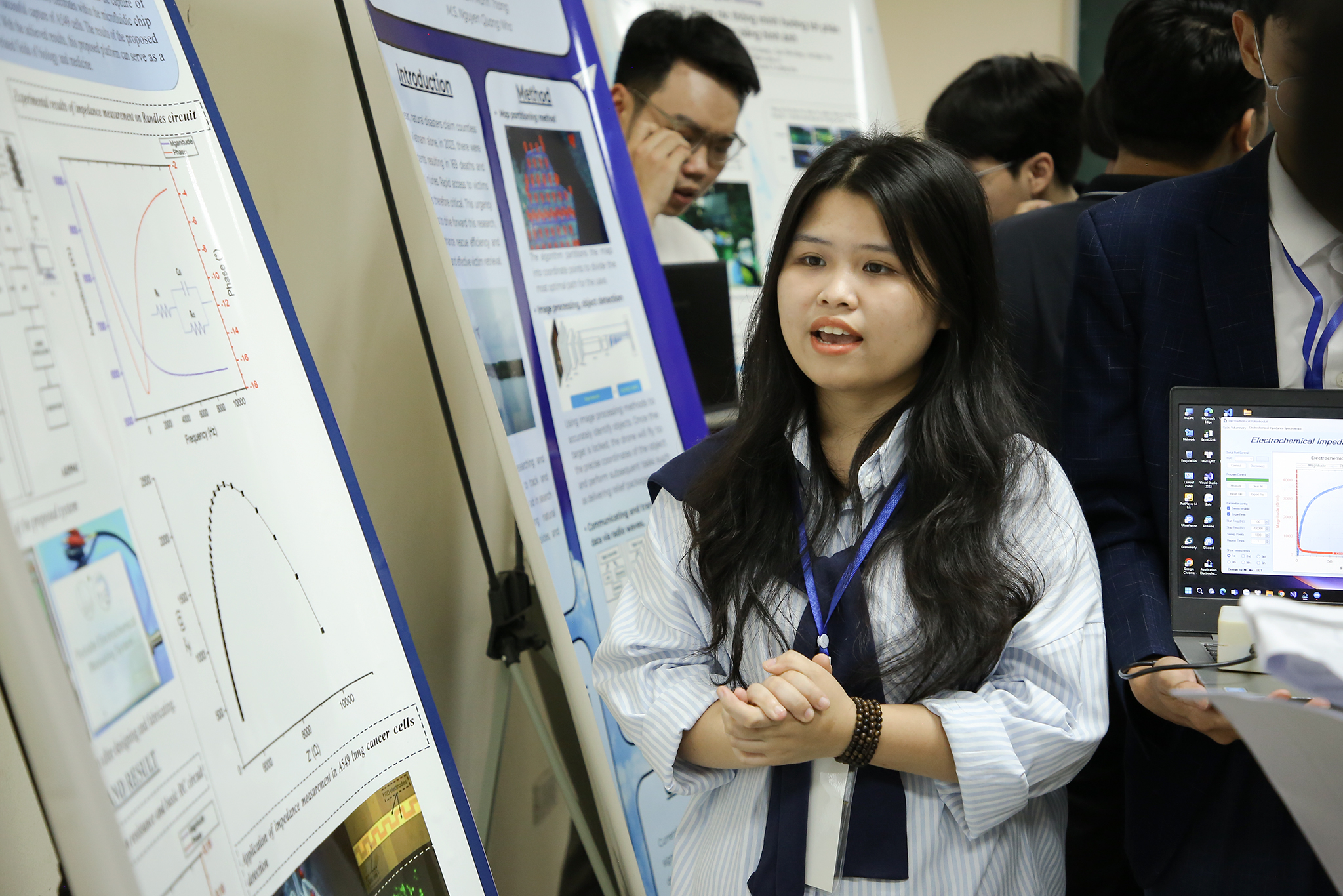 “Nghiên cứu, thiết kế và chế tạo hệ thống đo trở kháng cầm tay dựa trên IC tương tự AD5941 để phát hiện tế bào ung thư phổi A549” là một đề tài liên ngành do nhóm sinh viên khoa Điện tử viễn thông cùng khoa Cơ học kỹ thuật và tự động hóa triển khai. Sinh viên Đỗ Thị Loan, Phan Trung Kiên và Trương Quang Minh đã giành giải Nhất sinh viên nghiên cứu khoa học cấp Trường và là một trong những đề tài tham dự giải thưởng sinh viên nghiên cứu khoa học cấp Bộ.