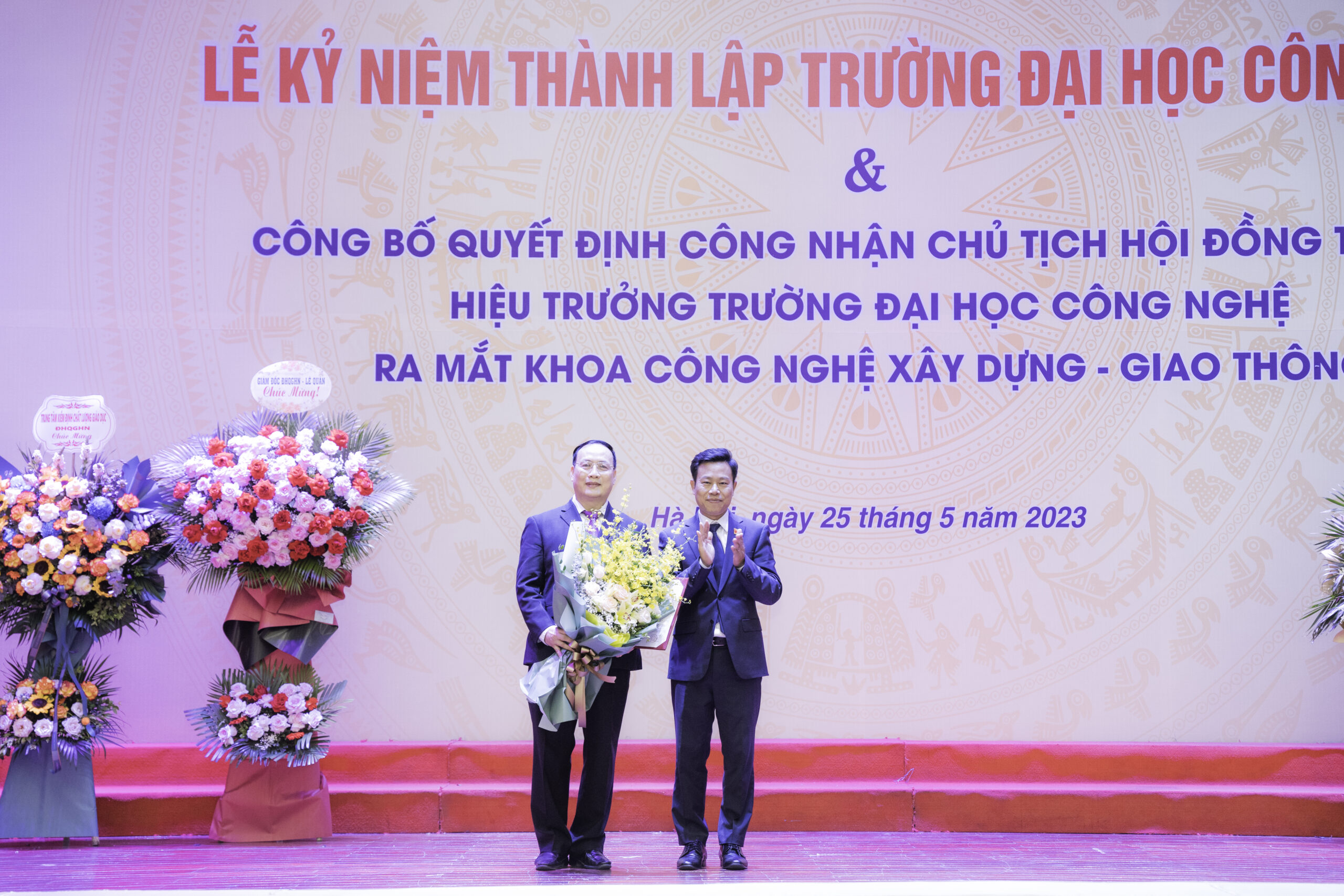 Giám đốc ĐHQGHN Lê Quân trao quyết định công nhận Chủ tịch Hội đồng trường ĐH Công nghệ cho GS Nguyễn Đình Đức