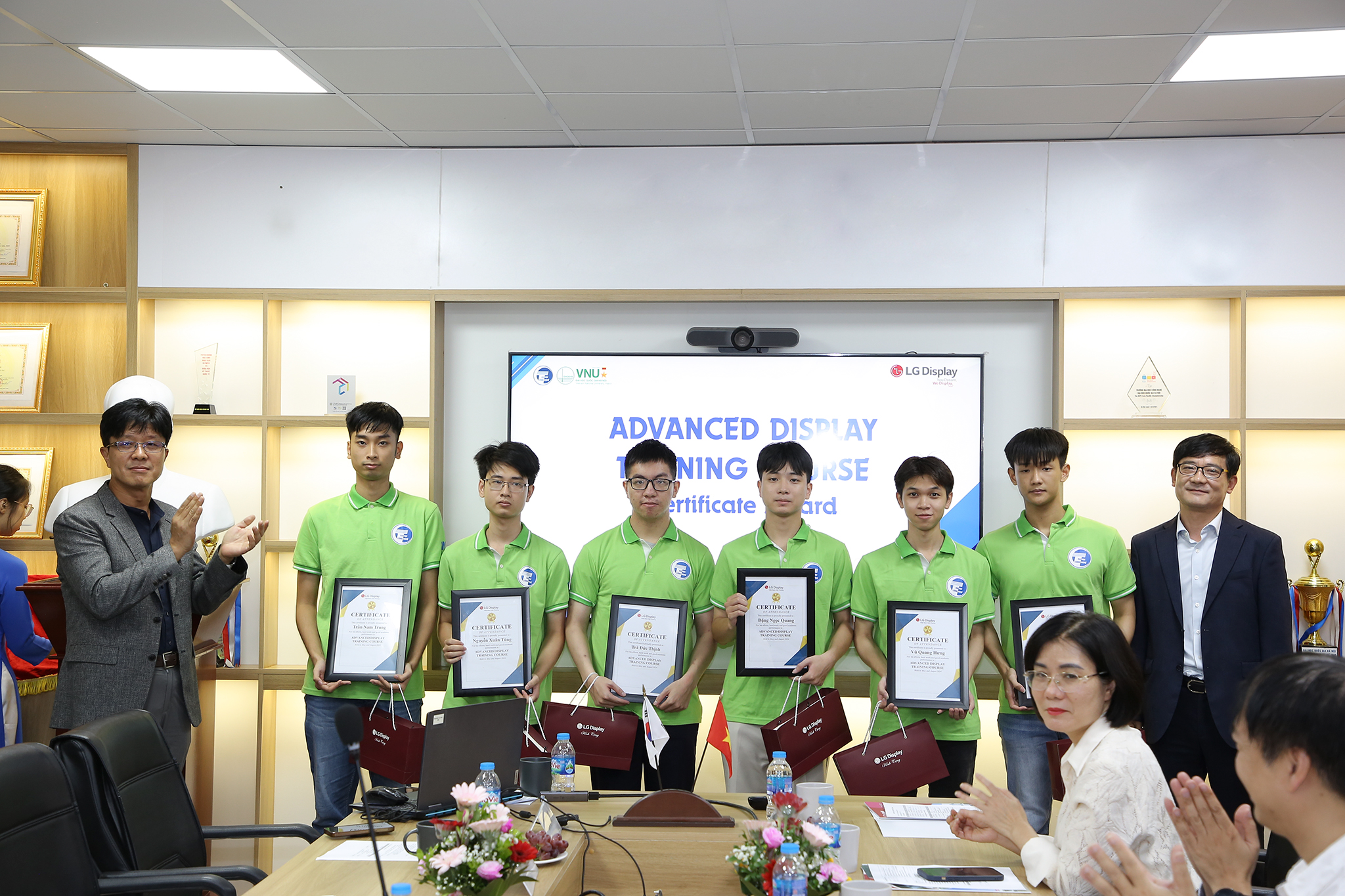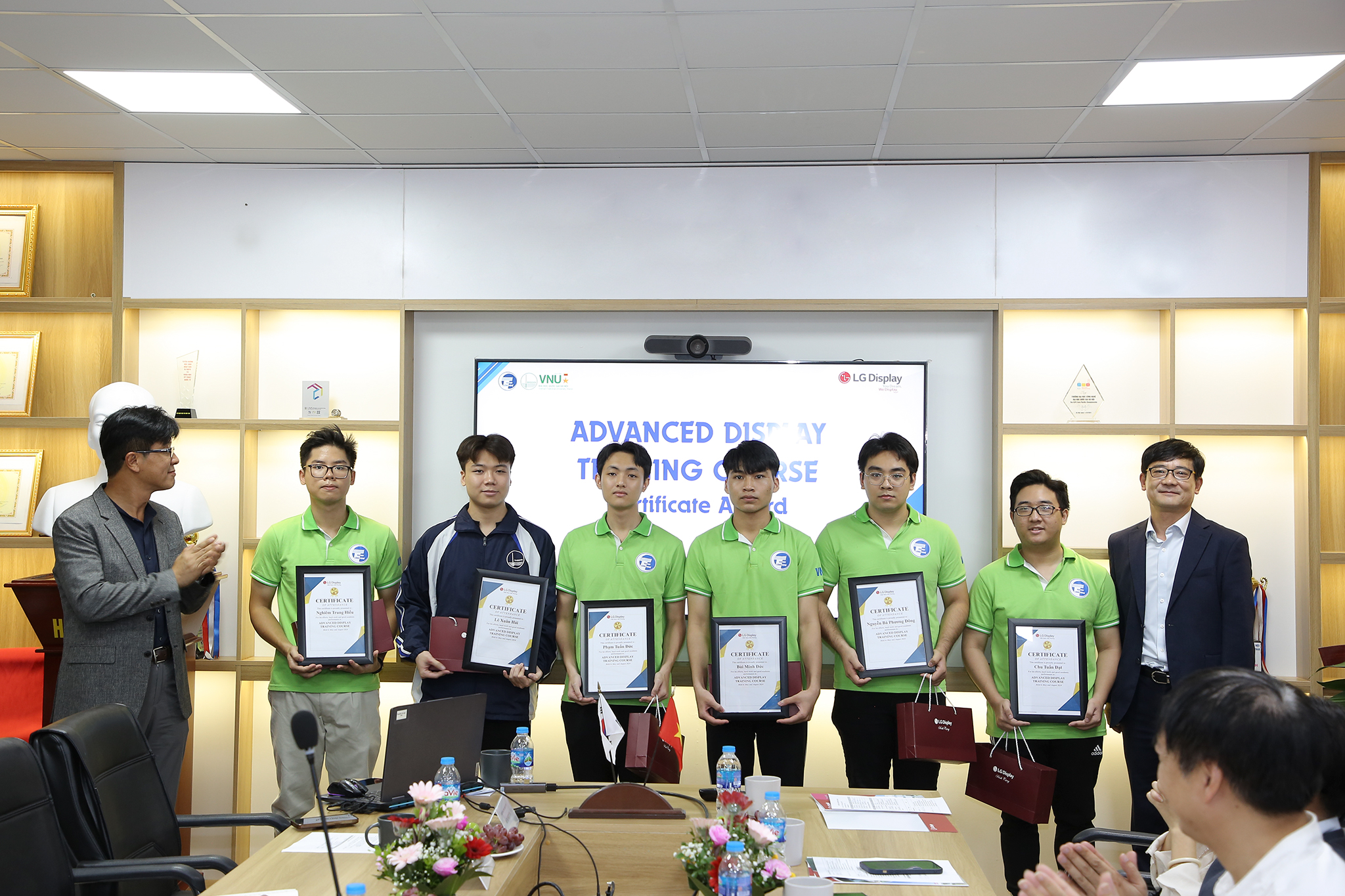 Trải qua ba tuần học tập tiếp theo tại Công ty LG Display Việt Nam Hải Phòng (LGDVH), ngày 30/8/2024, tại Trường Đại học Công nghệ – Đại học Quốc gia Hà Nội (VNU-UET) đã diễn ra Lễ bế giảng chương trình đào tạo chuyên ngành Công nghệ màn hình tiên tiến và khánh thành Phòng thí nghiệm Công nghệ màn hình tiên tiến (Advanced Display Laboratory).
