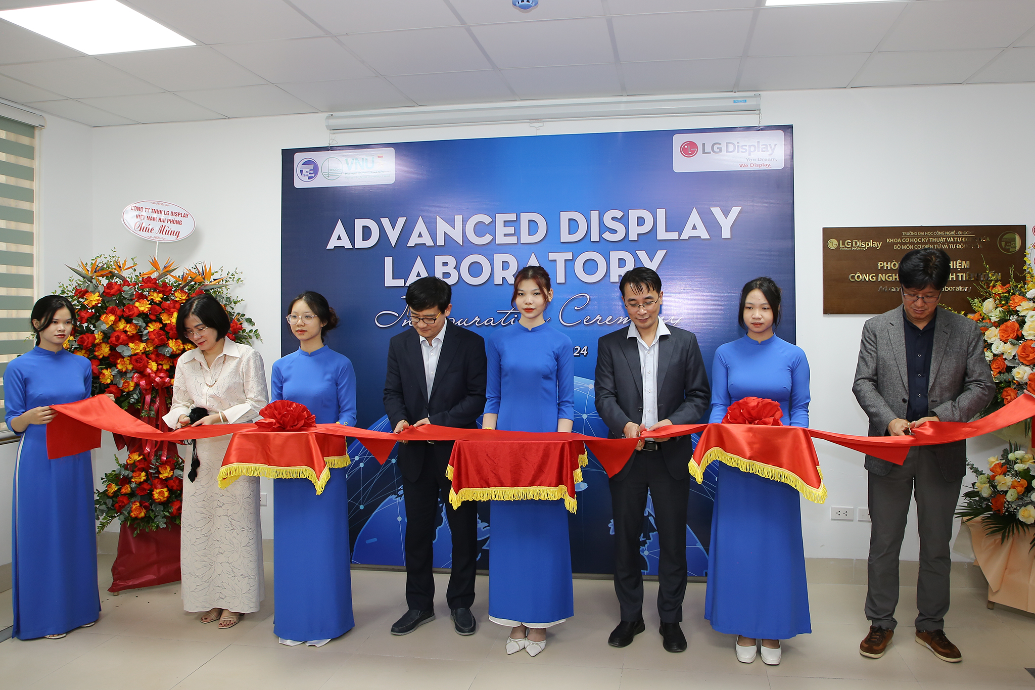 Nằm trong khuôn khổ hợp tác giữa hai bên, sự ra đời của phòng thí nghiệm (PTN) Công nghệ màn hình tiên tiến đã đánh dấu bước ngoặt quan trọng trong việc đẩy mạnh hợp tác giữa hai bên. Nhằm giúp sinh viên có môi trường học tập, thực hành ý tưởng và tiếp cận, làm quen với môi trường tiên tiến nhất trong lĩnh vực tự động hóa và công nghệ màn hình, LGDVH đã tài trợ cho Trường ĐH Công nghệ PTN Công nghệ màn hình tiên tiến với trang thiết bị hiện đại bao gồm 1 bộ robot kit gồm 2 cánh tay, 1 máy nén khí… cùng toàn bộ nội thất mới.
