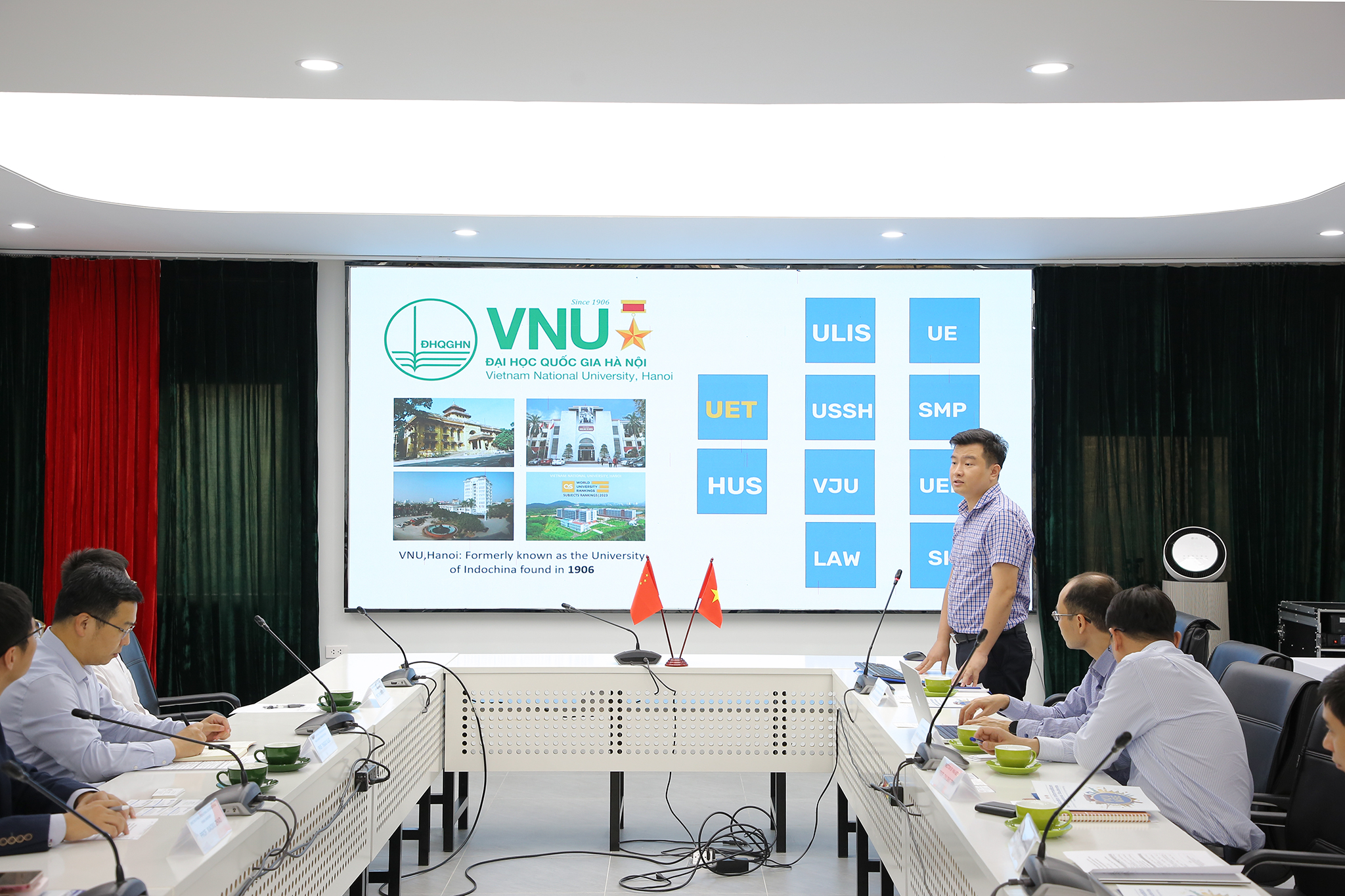 Ngày 14/10/2024, Trường Đại học Công nghệ, Đại học Quốc gia Hà Nội (VNU-UET) đã có buổi tiếp đón và làm việc cùng đại diện đến từ Trường Khoa học và Công nghệ Vật liệu (MSE), Đại học Bắc Kinh (Trung Quốc), nhằm thảo luận và đưa ra những phương án hợp tác mang đến môi trường học tập, giao lưu quốc tế cho sinh viên hai bên. Dẫn đầu đoàn MSE là GS. Yinguo Xiao – Phó Hiệu trưởng, GS. Xiaoxu Zhao – Giám đốc Văn phòng trao đổi quốc tế cùng các cán bộ MSE.
