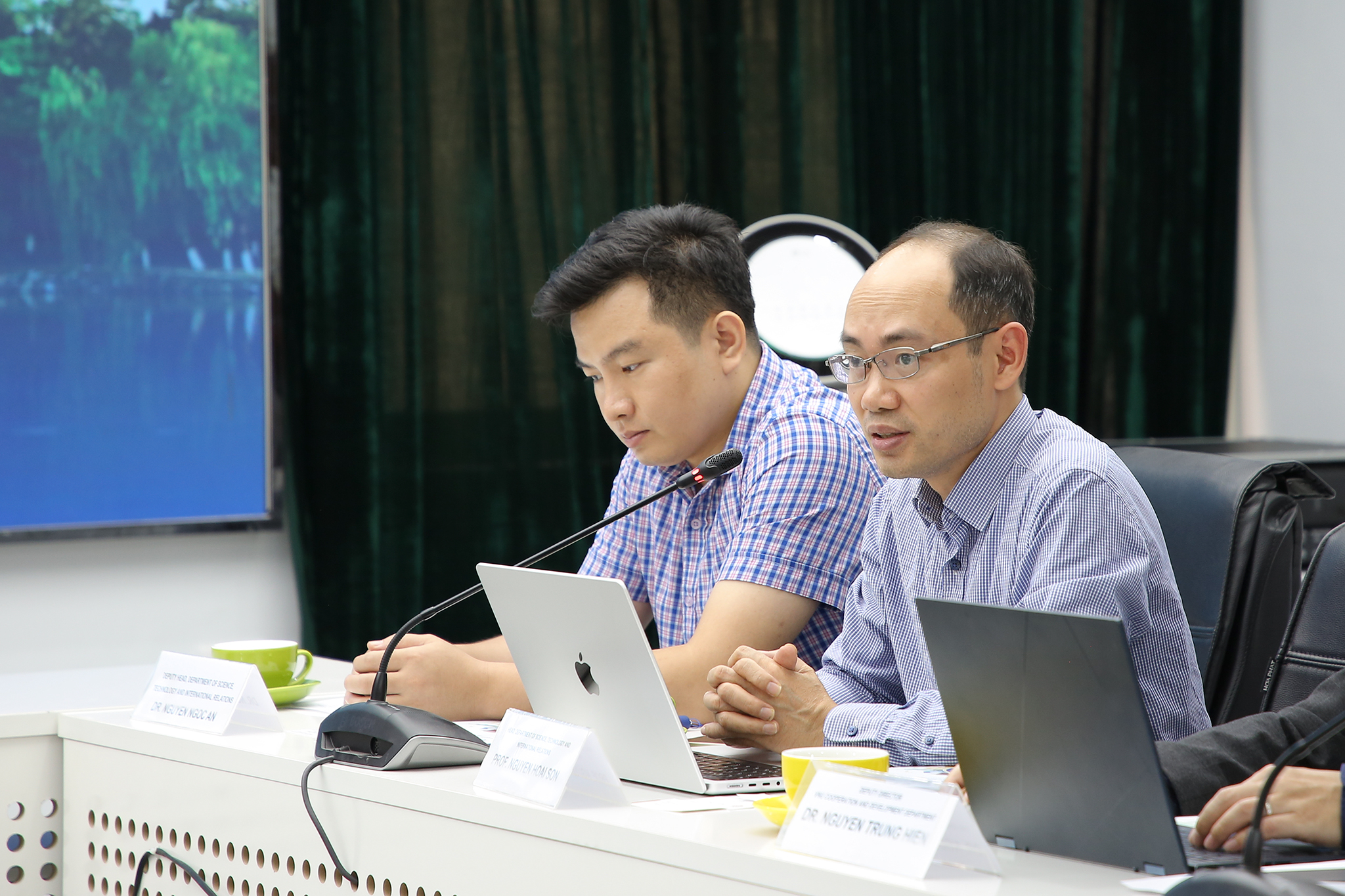 PGS.TS. Nguyễn Hoài Sơn – Trưởng phòng Khoa học công nghệ và Hợp tác phát triển trao đổi tại buổi làm việc