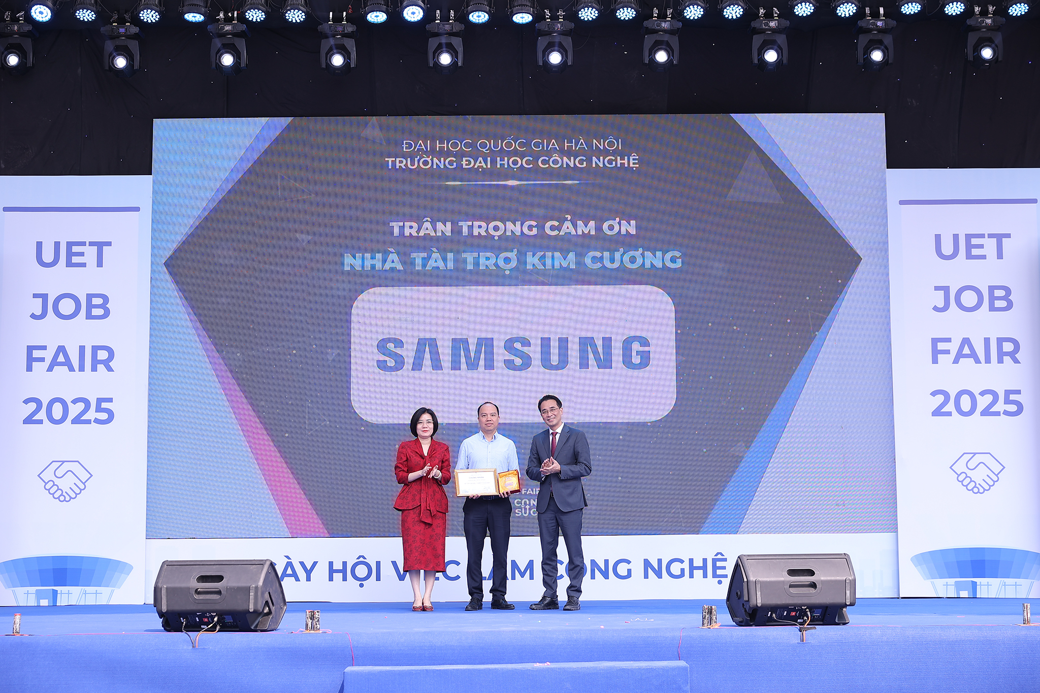 Sau nhiều năm hợp tác với Trường ĐH Công nghệ, ông Đỗ Đức Dũng – Giám đốc bộ phận Giải pháp Phần mềm đại diện Samsung R&D Center Vietnam cho biết: “Trường ĐH Công nghệ là nơi đã đào tạo nhiều thế hệ sinh viên trưởng thành và thành công, trong đó có sự đóng góp từ các chương trình kết nối và định hướng nghề nghiệp như UET Jobfair. Ngày hội là cầu nối giúp doanh nghiệp tiếp cận, chia sẻ với sinh viên về định hướng nghề nghiệp, các kỹ năng và kiến thức cần thiết. Đồng thời, chương trình còn tạo điều kiện để sinh viên hiểu rõ hơn về yêu cầu, xu hướng công việc trong tương lai”. Đồng quan điểm với GS.TS Chử Đức Trình, ông Đức Dũng cho rẳng: “Sinh viên cần có ý chí, tầm nhìn dài hạn để cùng doanh nghiệp xây dựng, cống hiến và đạt được những thành công lớn, góp phần vào sự phát triển chung của doanh nghiệp, xã hội và bản thân”.