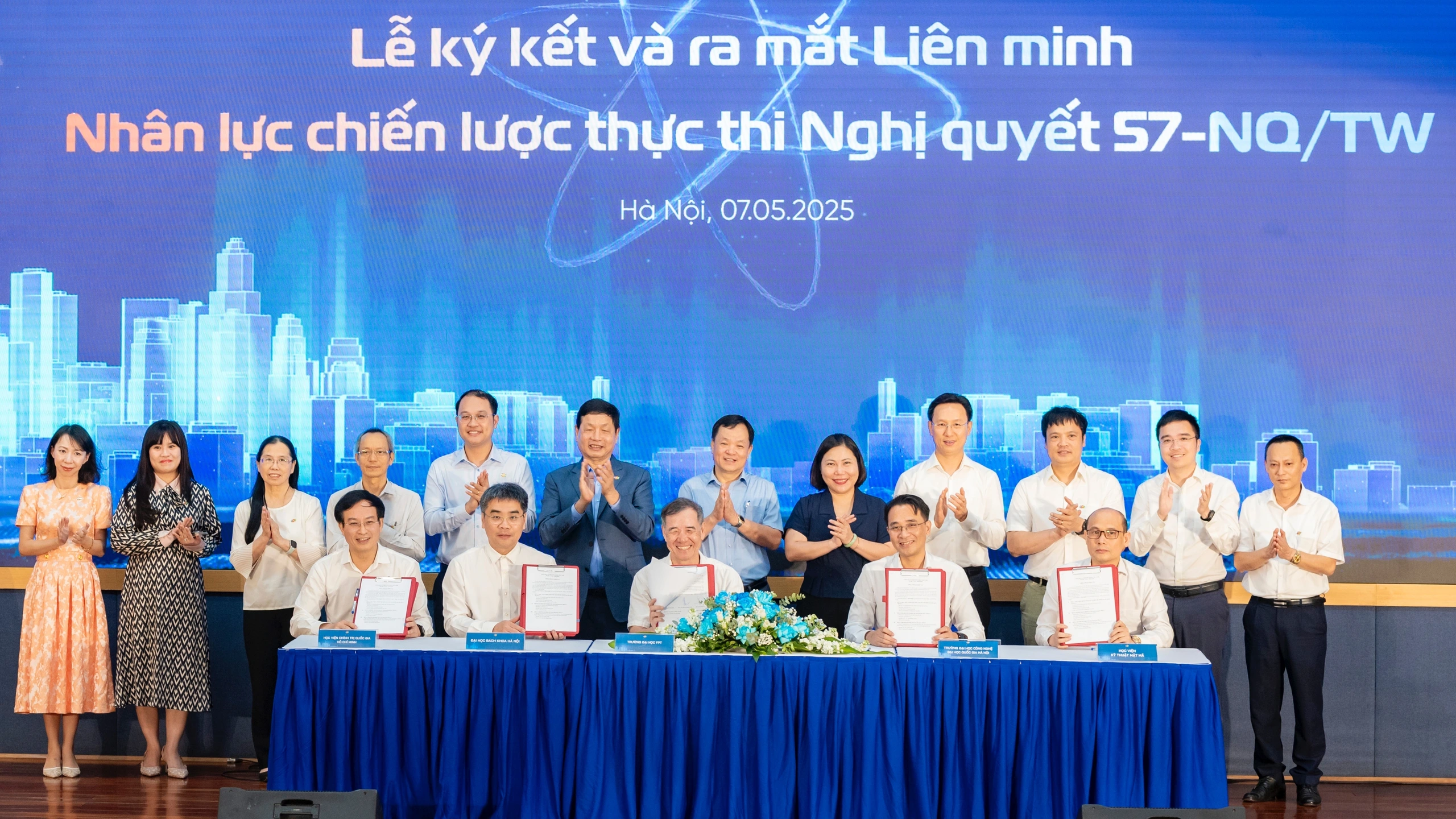 Chiều 7/5/2025, tại Hà Nội, Trường Đại học Công nghệ – Đại học Quốc gia Hà Nội đã cùng 4 cơ sở đào tạo đại học gồm: Học viện Chính trị quốc gia Hồ Chí Minh, Học viện Kỹ thuật mật mã, Đại học Bách khoa Hà Nội, và Trường Đại học FPT ký kết liên minh nhân lực chiến lược thực thi Nghị quyết 57-NQ/TW về đột phá phát triển khoa học, công nghệ, đổi mới sáng tạo và chuyển đổi số quốc gia.