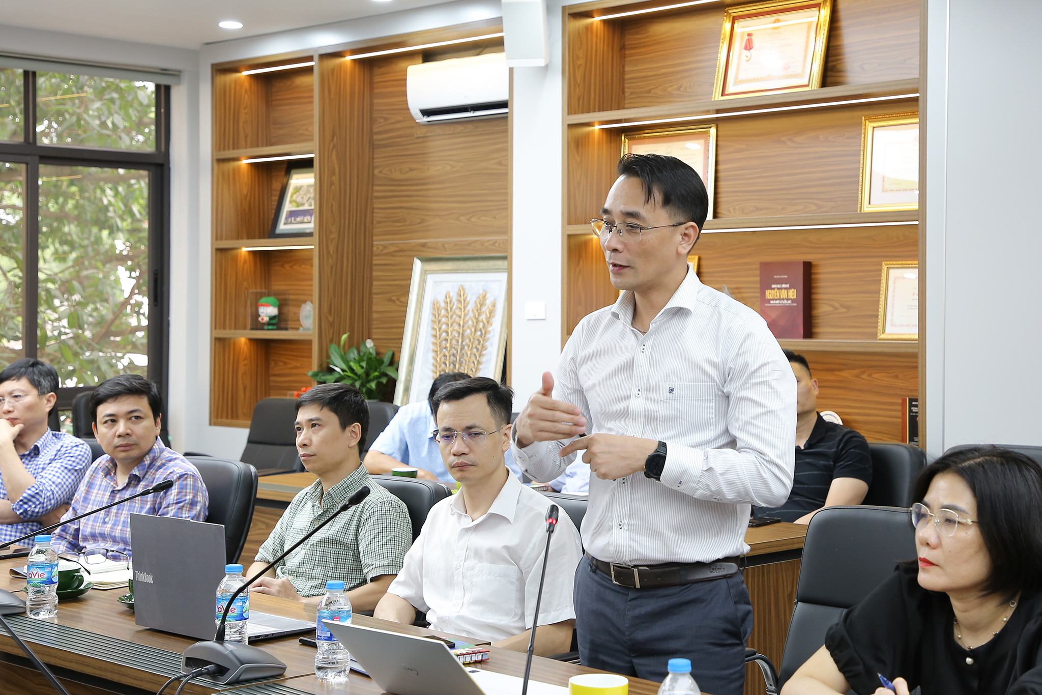 Phần thảo luận, trao đổi nhận được nhiều ý kiến đóng góp từ lãnh đạo các đơn vị Trường ĐH Công nghệ. Cụ thể là đề xuất ĐHQGHN tiếp tục hỗ trợ về cơ chế và tạo hành lang pháp lý thuận lợi hơn để triển khai các hoạt động khoa học công nghệ theo mô hình ba nhà. Đại diện các đơn vị cũng kiến nghị cần có các gói hỗ trợ ban đầu cho các nhóm nghiên cứu chuyển giao công nghệ, nhất là các nhóm spin-off mới thành lập.