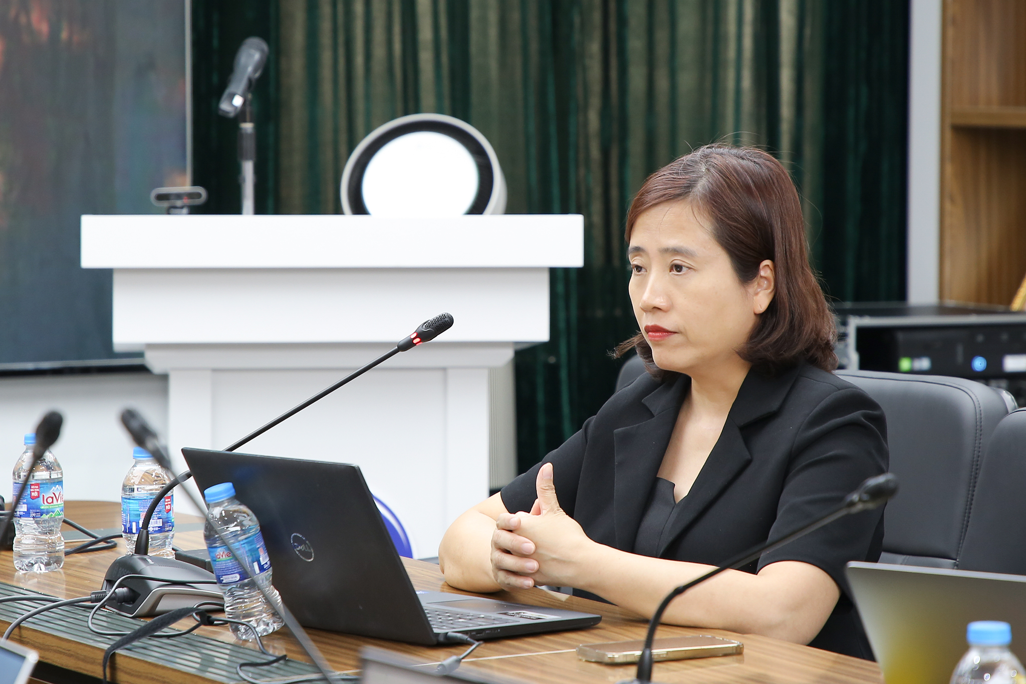 TS. Nguyễn Thu Hương – Phó hiệu trưởng Trường ĐH Công nghệ trao đổi tại phần thảo luận