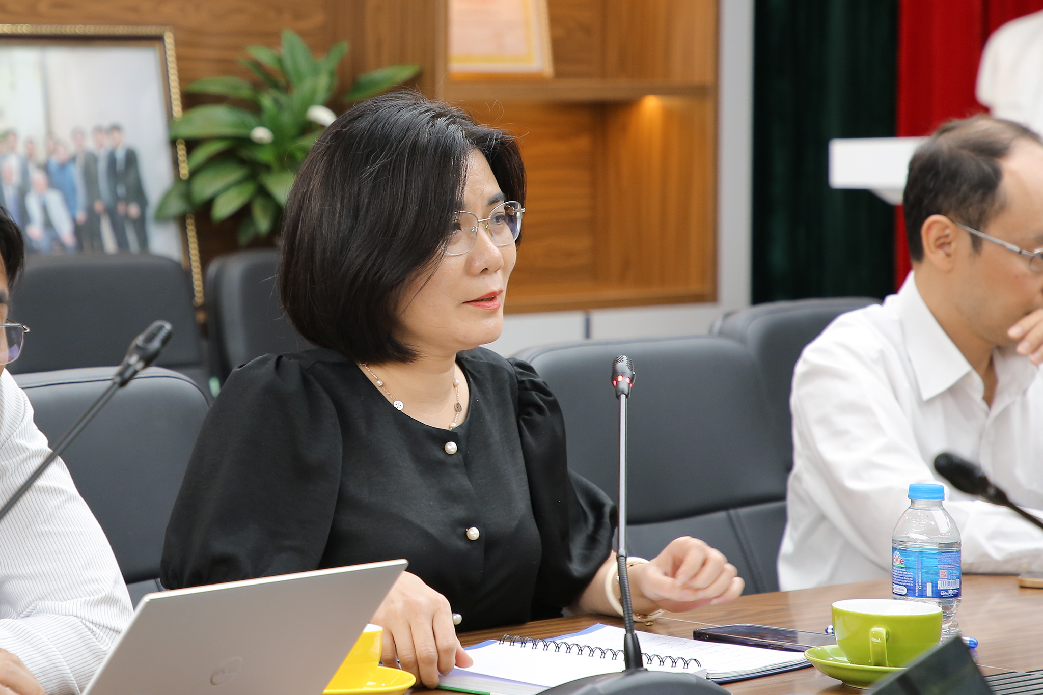 Phát biểu tại buổi làm việc, Phó Giám đốc ĐHQGHN Phạm Bảo Sơn khẳng định, Nghị quyết 57-NQ/TW của Bộ Chính trị về đột phá phát triển khoa học, công nghệ, đổi mới sáng tạo và chuyển đổi số quốc gia là bước ngoặt lớn, mở ra hành lang pháp lý thông thoáng cho các hoạt động khoa học công nghệ gắn với thực tiễn doanh nghiệp và sự phát triển của đất nước với mục tiêu đưa sản phẩm nghiên cứu phục vụ thiết thực cho phát triển kinh tế – xã hội và mang lại hiệu quả thực tế cho doanh nghiệp. ĐHQGHN xác định rõ vai trò hạt nhân trong việc hiện thực hóa nghị quyết này thông qua việc thúc đẩy hợp tác sâu rộng giữa các bên liên quan.