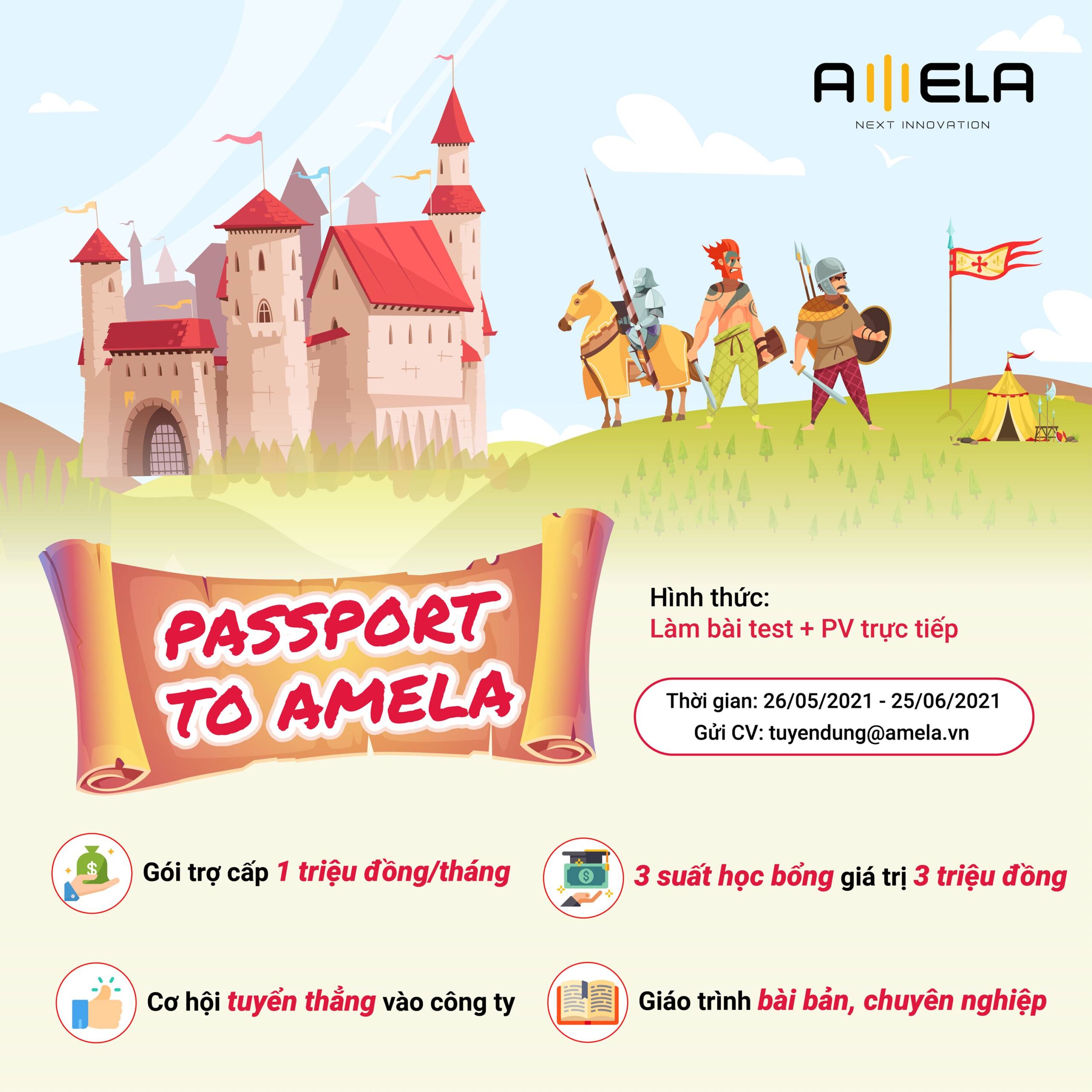 Nộp CV tại email: tuyendung@amela.vn với tiêu đề [AMELA-FRESHER] TÊN NGÔN NGỮ.