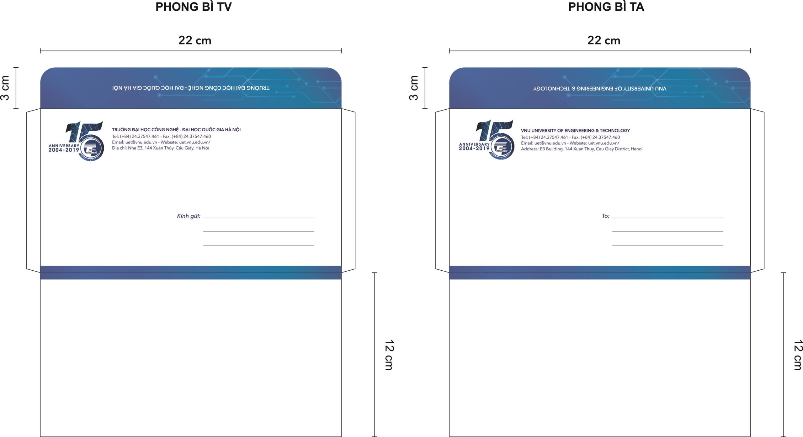 Nhân dịp kỉ niệm 15 năm thành lập (2004-2019) và 20 năm ngày truyền thống (1999-2019), Trường Đại học Công nghệ công bố các mẫu tài liệu văn phòng sử dụng trong các hoạt động của Nhà trường năm 2019 (click chuột phải vào ảnh để tải về máy).