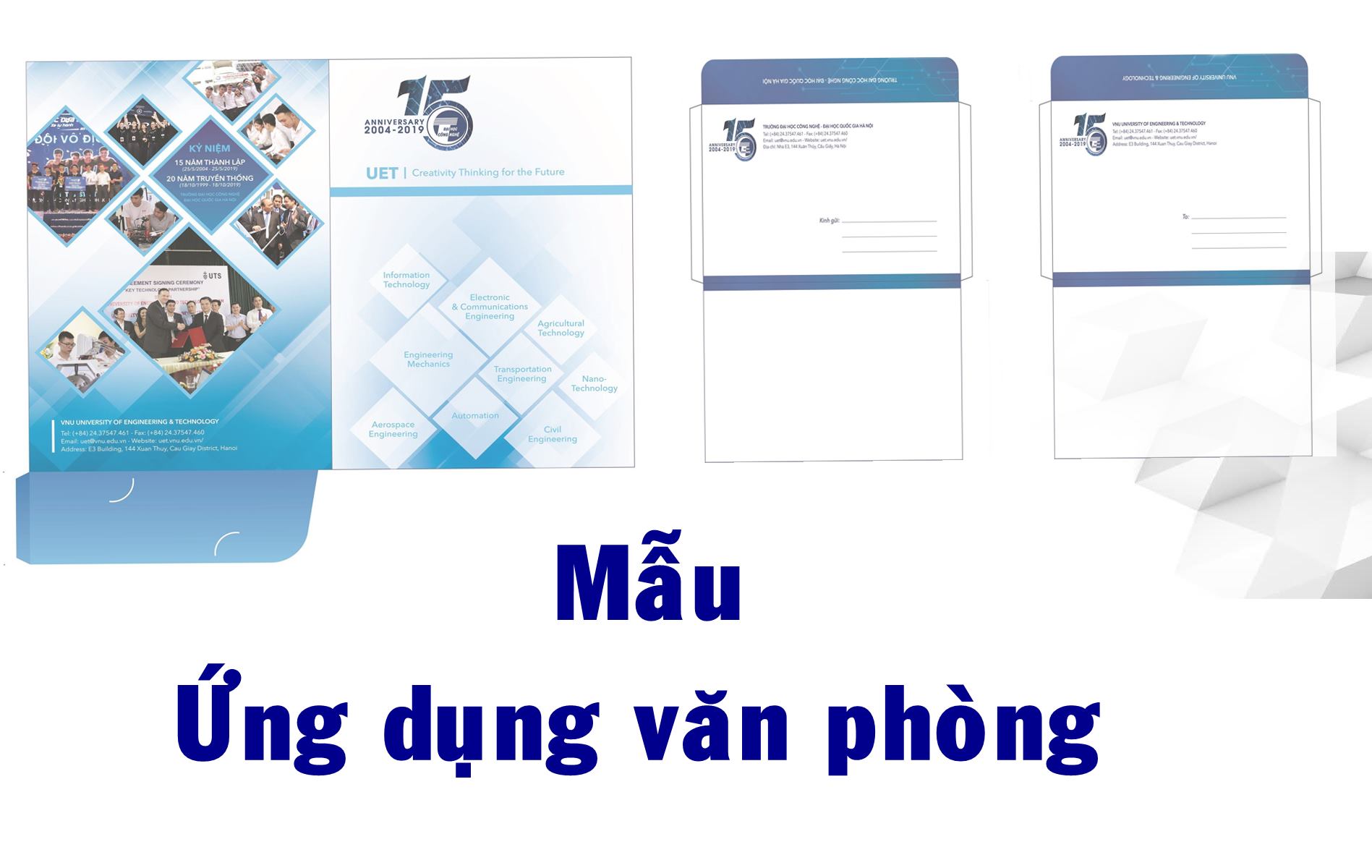 Nhân dịp kỉ niệm 15 năm thành lập (2004-2019) và 20 năm ngày truyền thống (1999-2019), Trường Đại học Công nghệ công bố các mẫu tài liệu văn phòng sử dụng trong các hoạt động của Nhà trường năm …
