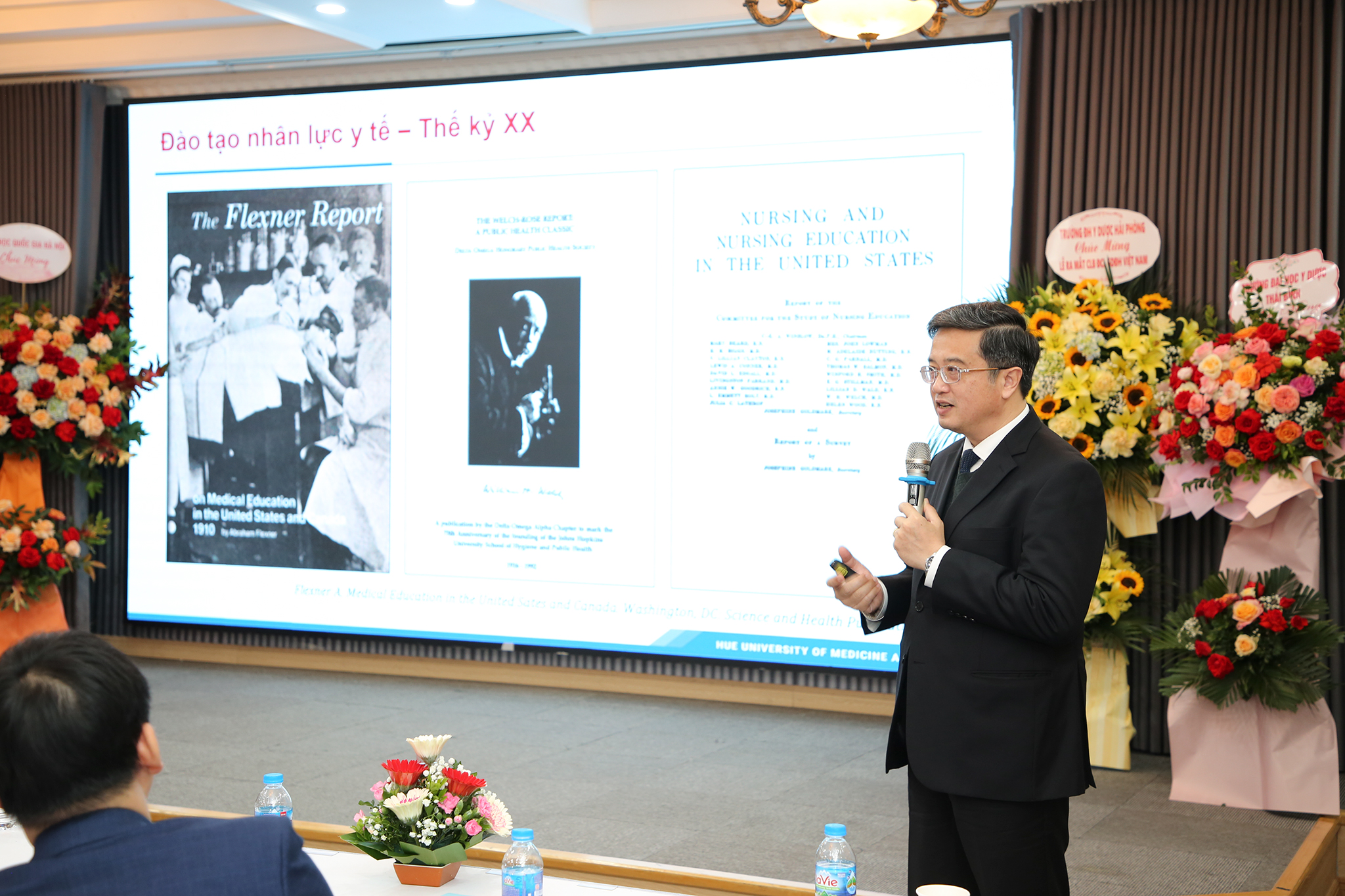 GS.TS. Nguyễn Quốc Huy, Hiệu trưởng ĐH Y dược – ĐH Huế báo cáo về “Kiểm định chất lượng các cơ sở giáo dục đại học khối Khoa học sức khỏe”
