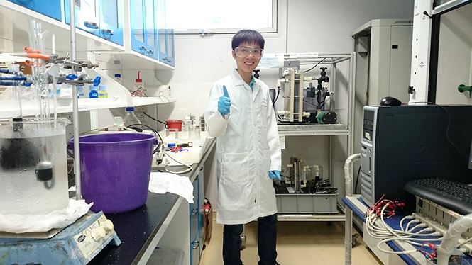 Anh Tâm vẫn nhớ những ngày đầu làm nghiên cứu sinh và được nhận vào nhóm nghiên cứu pin vanadium – một đề tài hợp tác tác giữa Đại học Công nghệ Nanyang và hai công ty đến từ Đức, Áo. “Mình tốt nghiệp ngành Vật lý nano nên lúc đầu rất bỡ ngỡ với một đề tài ngành Hóa này. Lúc đó, công ty cũng đã có hoạch định rất cụ thể về các bước mình phải làm để tìm ra một tổ hợp vật liệu mới giúp cải thiện hiệu suất của pin”, anh chia sẻ.