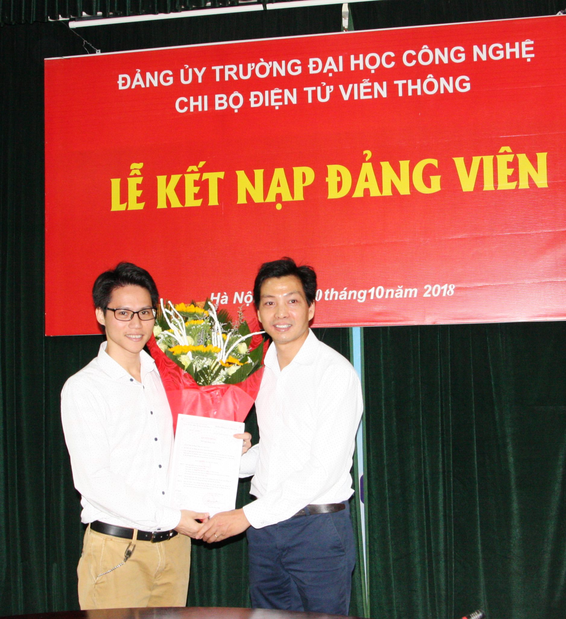 Tại buổi Lễ, đồng chí Đinh Triều Dương – Bí thư Chi bộ Điện tử Viễn thông đã trao Quyết định kết nạp và phân công nhiệm vụ cho đảng viên mới Hoàng Văn Xiêm. Đồng thời phân công các đồng chí đảng viên chính thức trong chi bộ tiếp tục giúp đỡ đồng chí Hoàng Văn Xiêm trong thời gian thử thách 12 tháng.