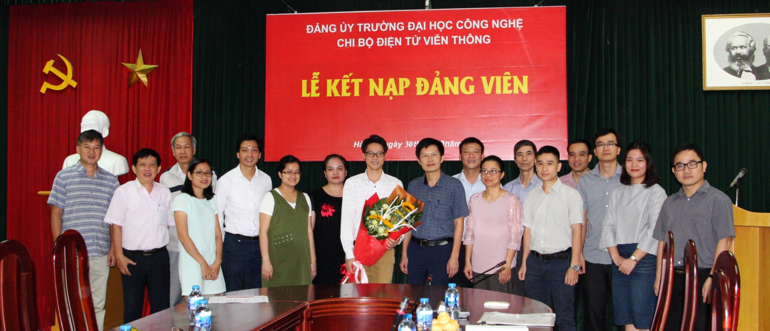 Chi bộ Điện tử viễn thông chụp ảnh lưu niệm với đảng viên mới Hoàng Văn Xiêm