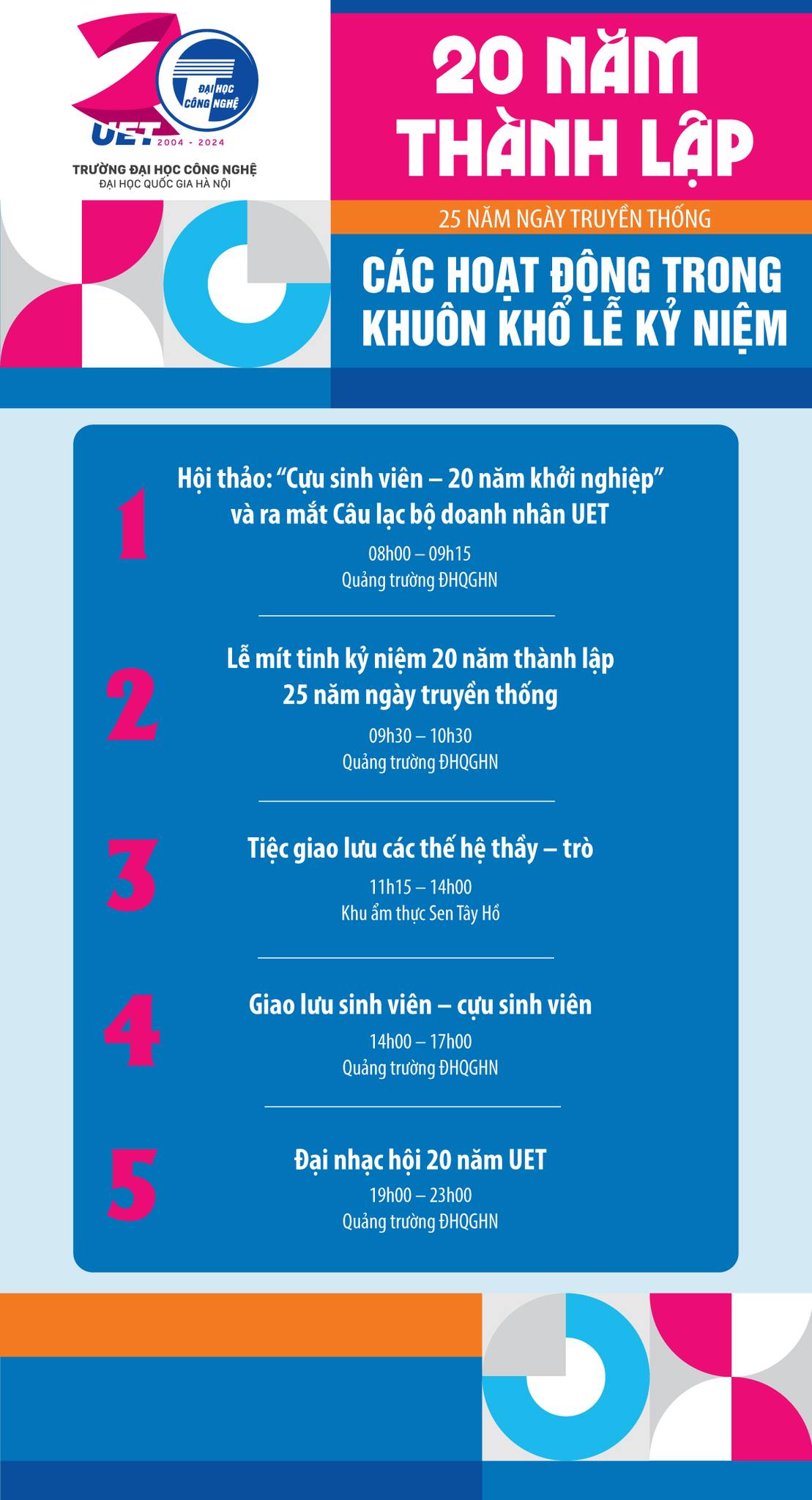 CHƯƠNG TRÌNH CHI TIẾT CÁC HOẠT ĐỘNG TRONG KHUÔN KHỔ LỄ KỶ NIỆM 20 NĂM THÀNH LẬP, 25 NĂM NGÀY TRUYỀN THỐNG TRƯỜNG ĐẠI HỌC CÔNG NGHỆ