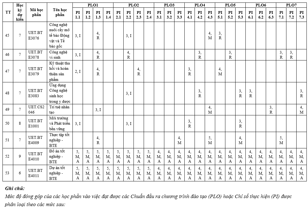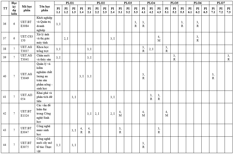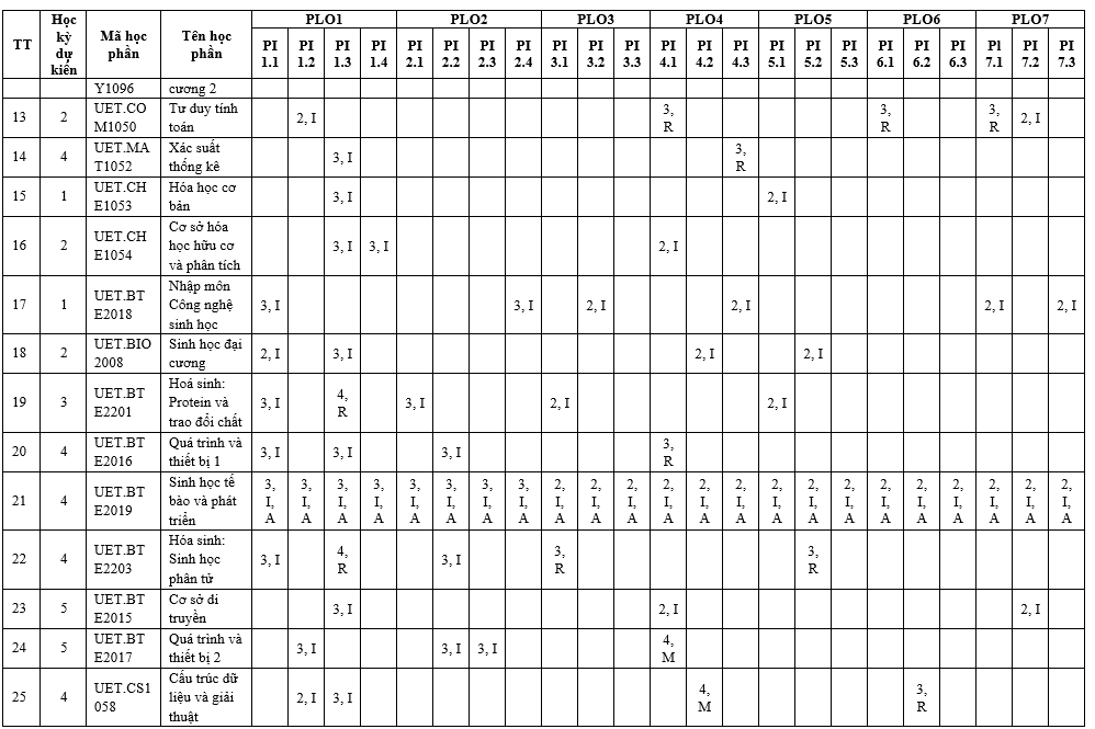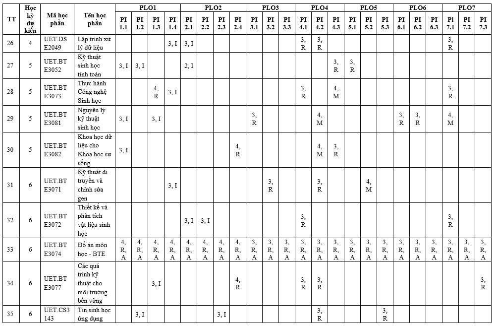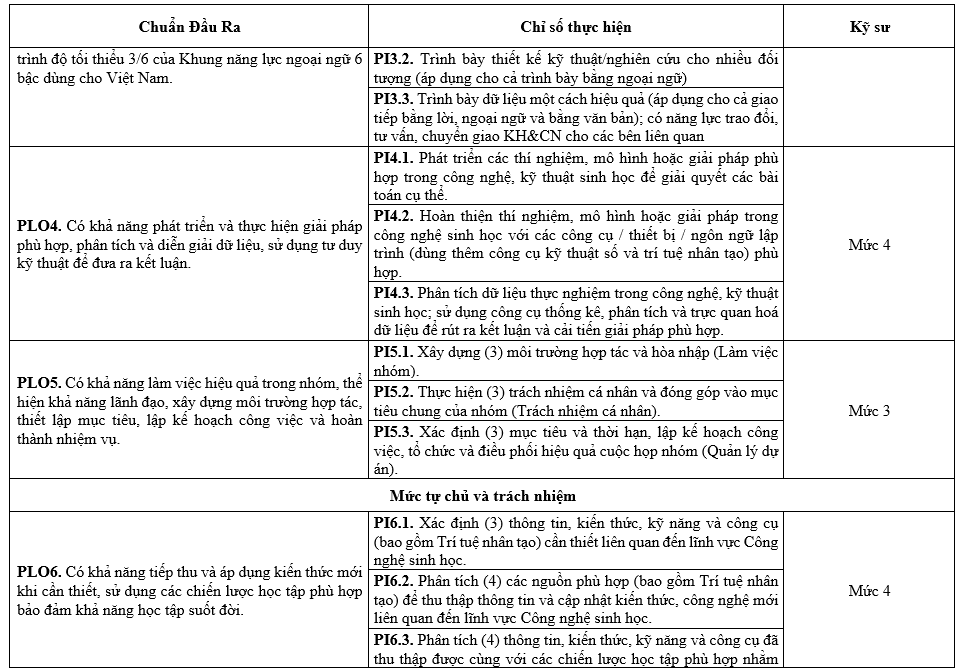 | PLO6 | Có khả năng tiếp thu và áp dụng kiến thức mới khi cần thiết, sử dụng các chiến lược học tập phù hợp bảo đảm khả năng học tập suốt đời. | x | ||