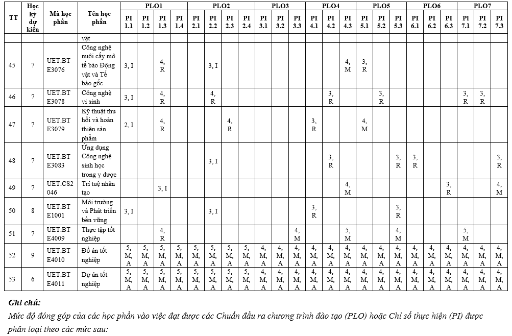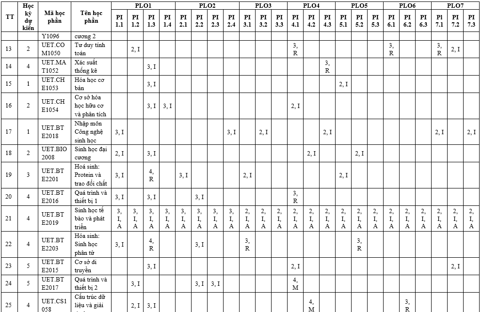 | PLO6 | Có khả năng tiếp thu và áp dụng kiến thức mới khi cần thiết, sử dụng các chiến lược học tập phù hợp bảo đảm khả năng học tập suốt đời. | x | ||