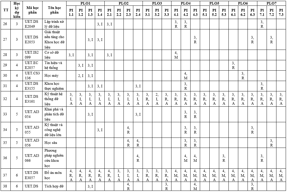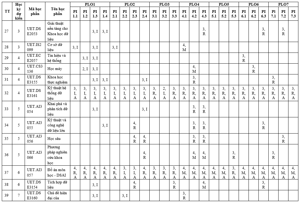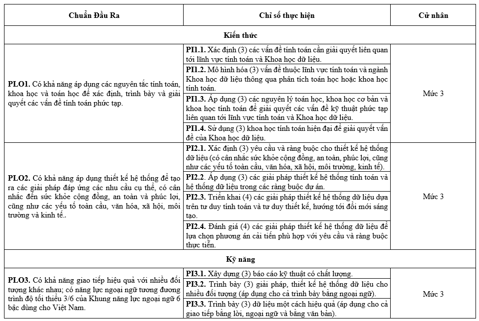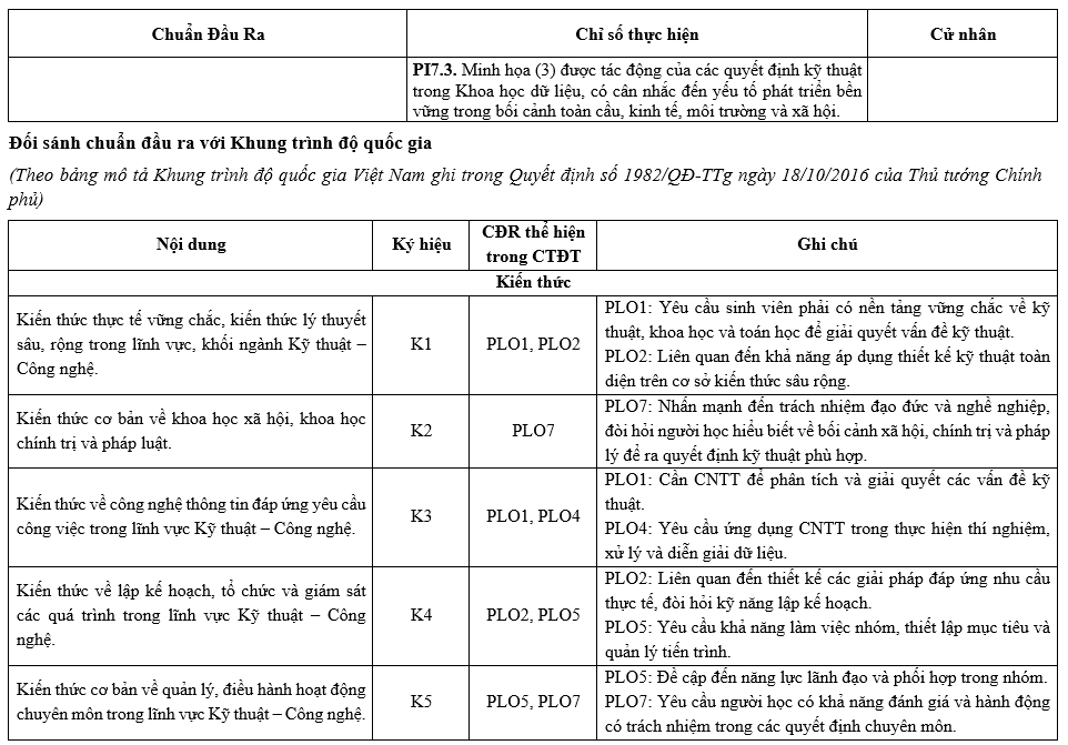 Chương trình đào tạo Khoa học và Kỹ thuật dữ liệu – Ngành Khoa học dữ liệu