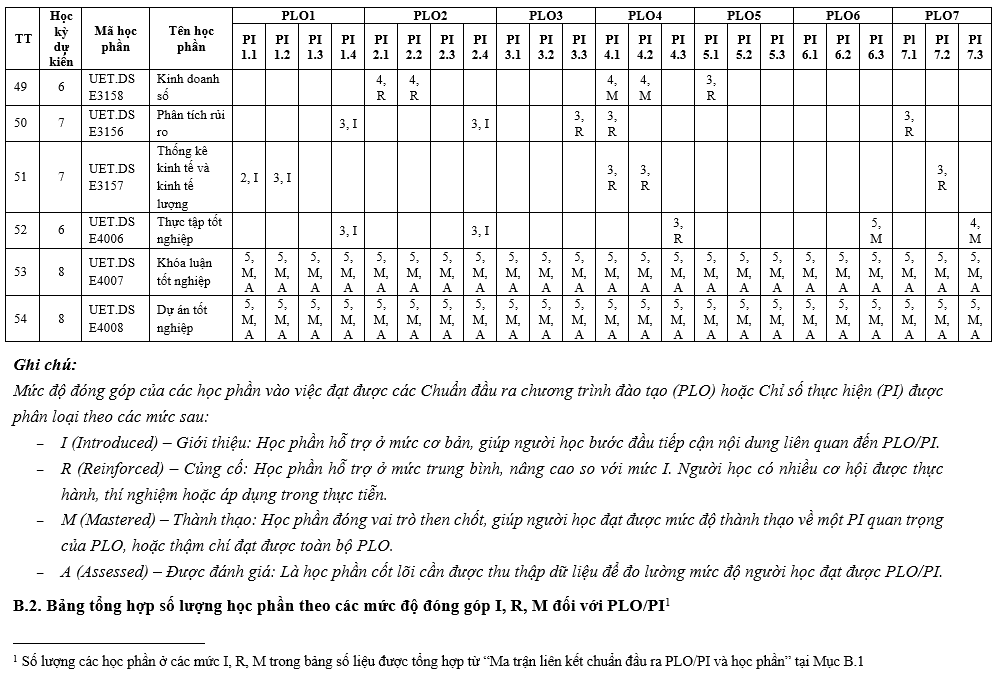 Các Chuẩn đầu ra (CĐR) của Chương trình đào tạo (CTĐT) bao gồm CĐR kiến thức, CĐR kỹ năng và CĐR mức tự chủ và trách nhiệm. CĐR bao gồm các mục (1) đến (7) như sau: